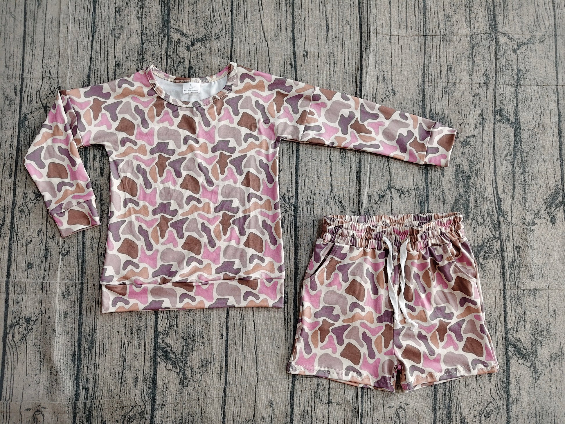 Baby Girl Kids Long Sleeves Camo Print Tops Pockets Shorts Clothes Set RTS