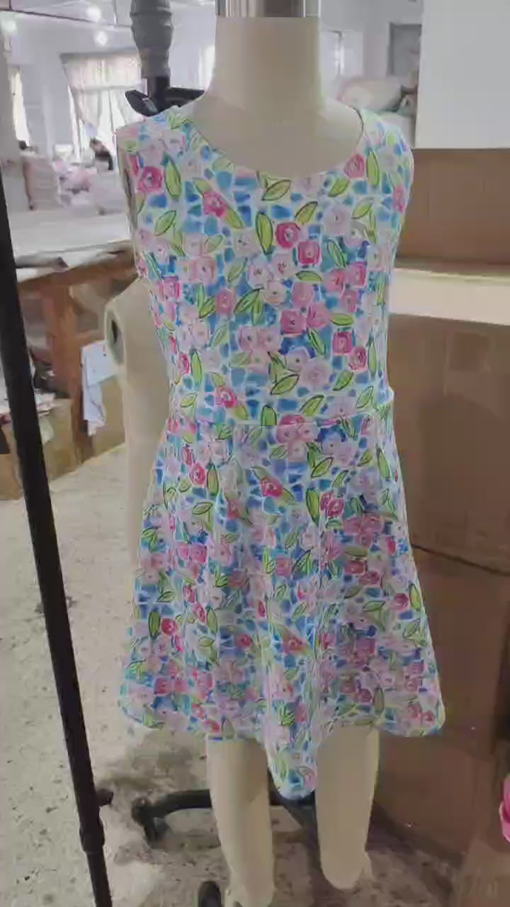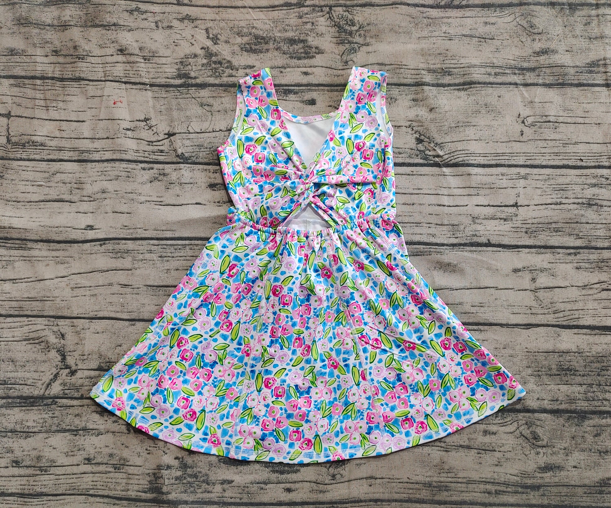 Baby Girl Kids Toddler Sleeveless Flower Yoga Active Wear Blue Dress RTS