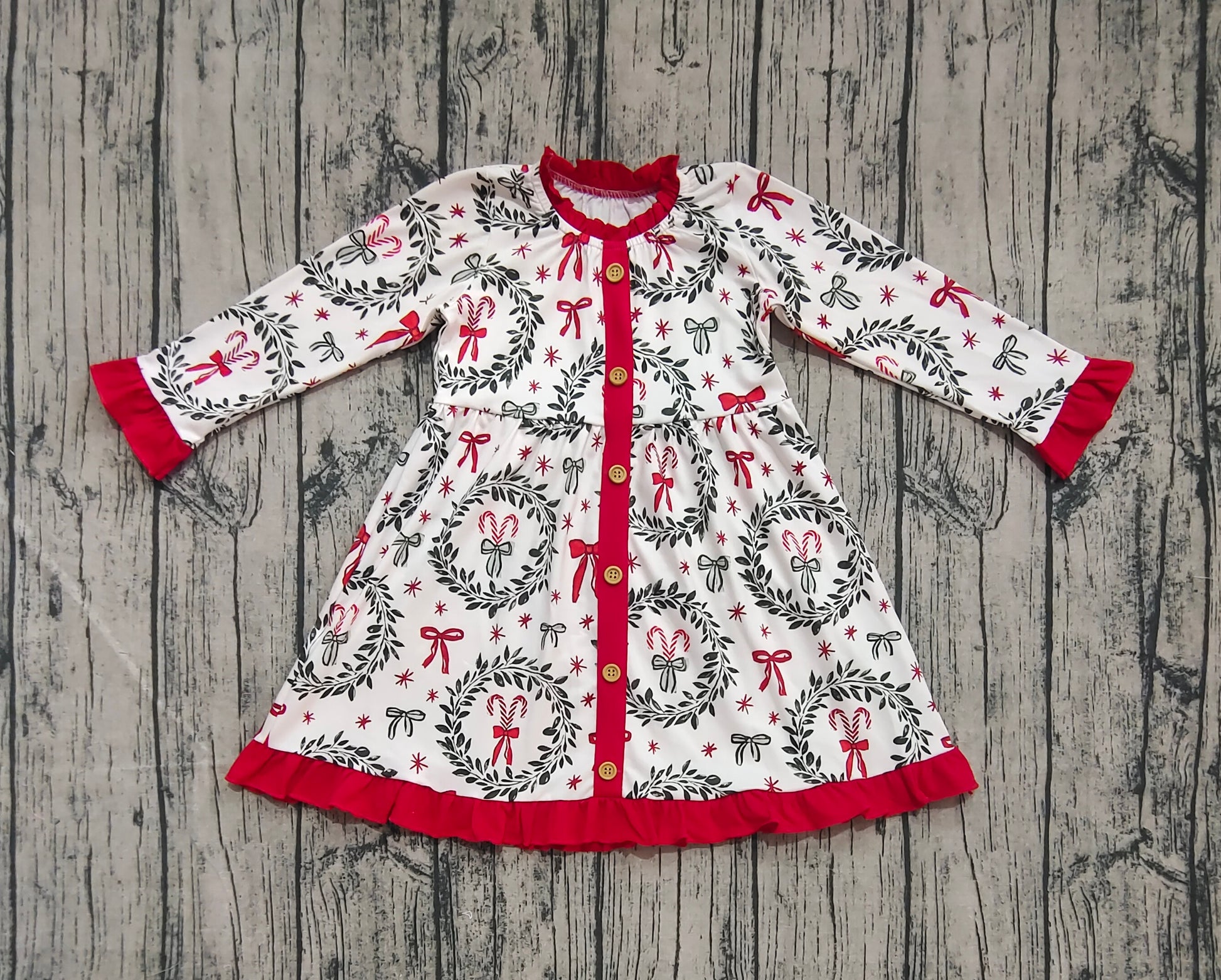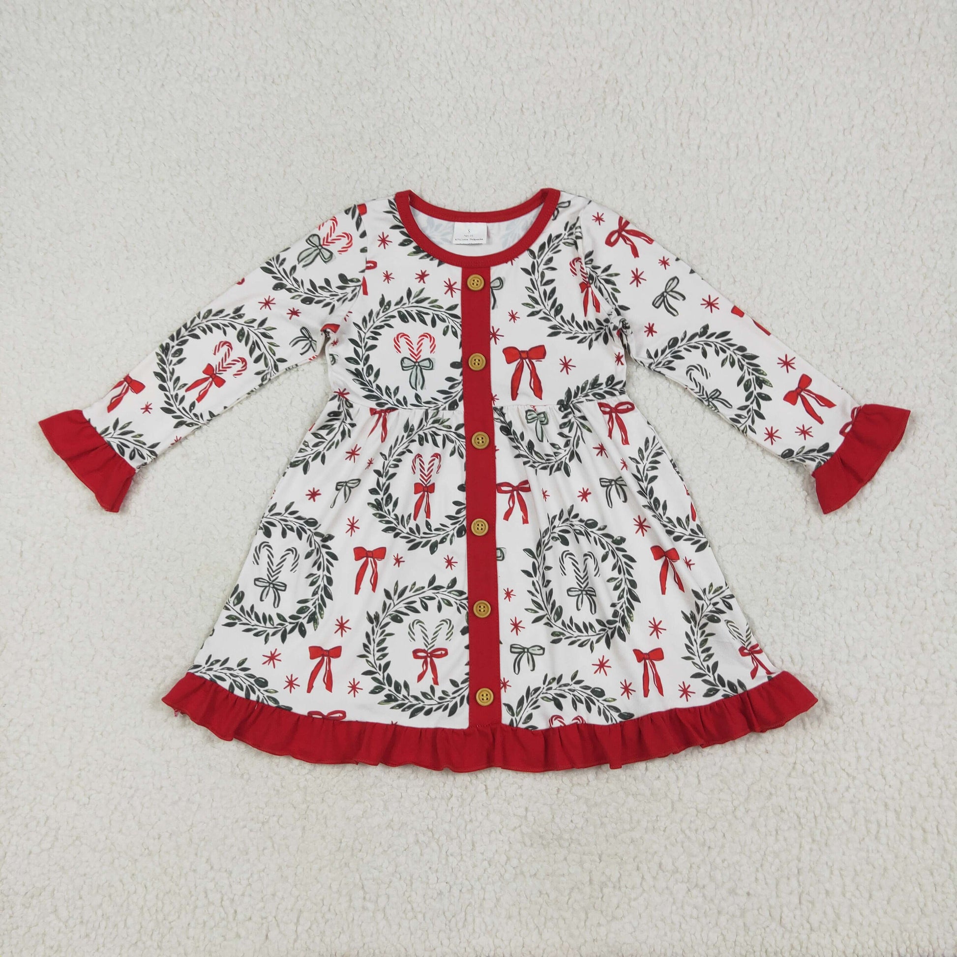 Baby Girl Long Sleeves Bows Buttons Christmas Knee Length Dress RTS