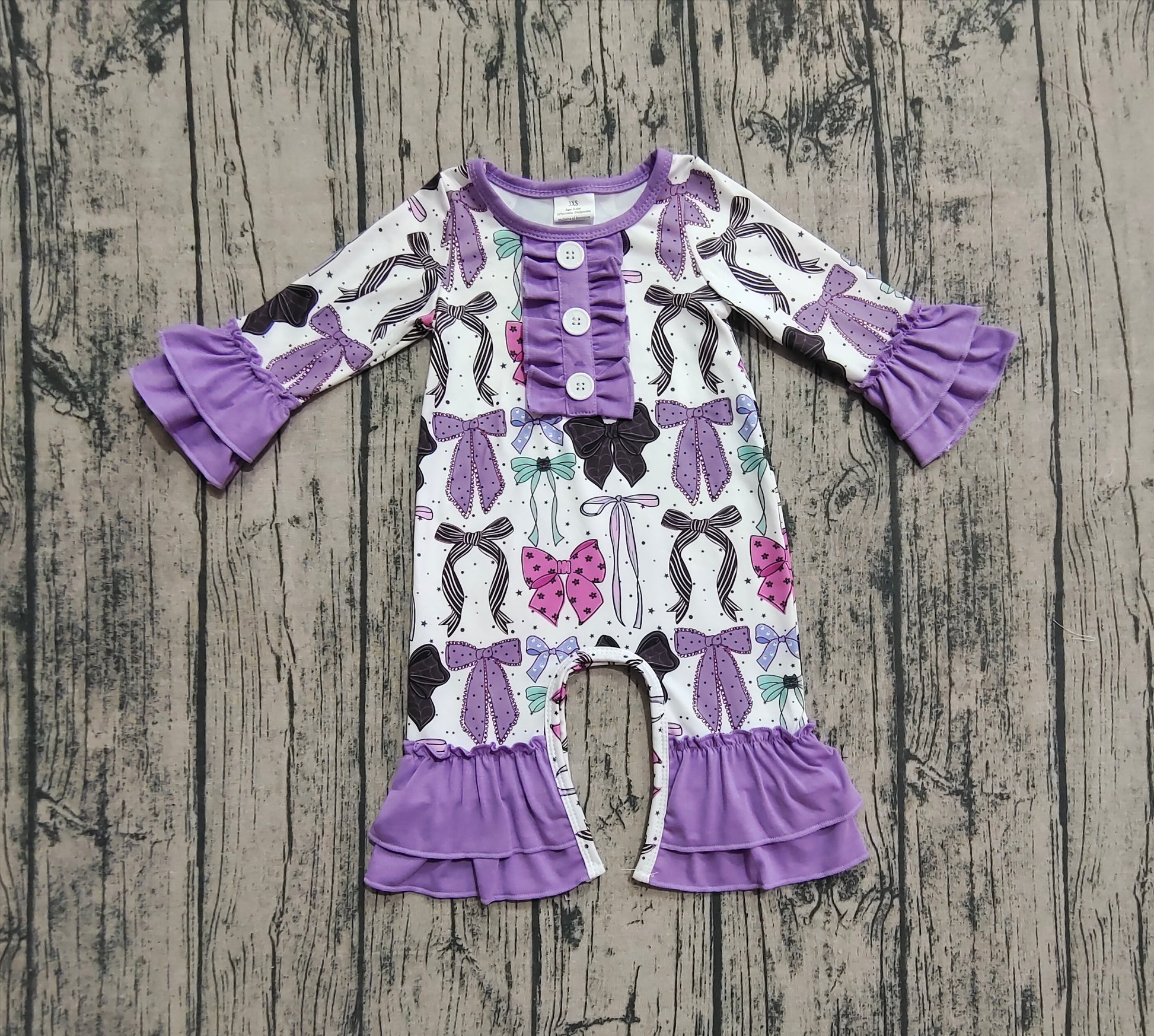Baby Girl Long Sleeves Bows Purple Ruffle Halloween Romper RTS