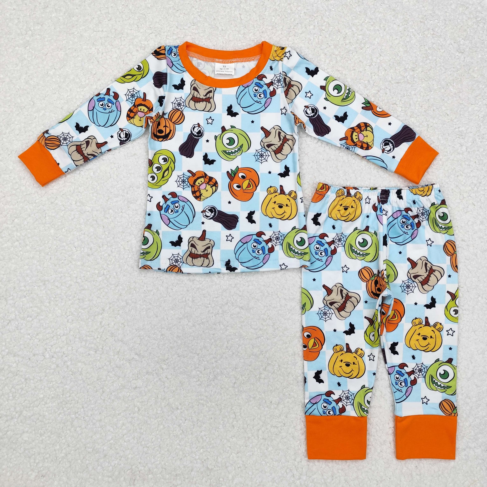 Baby Girl Long Sleeves Cartoon Pumpkin Halloween Shirt Pants Pajamas Set
