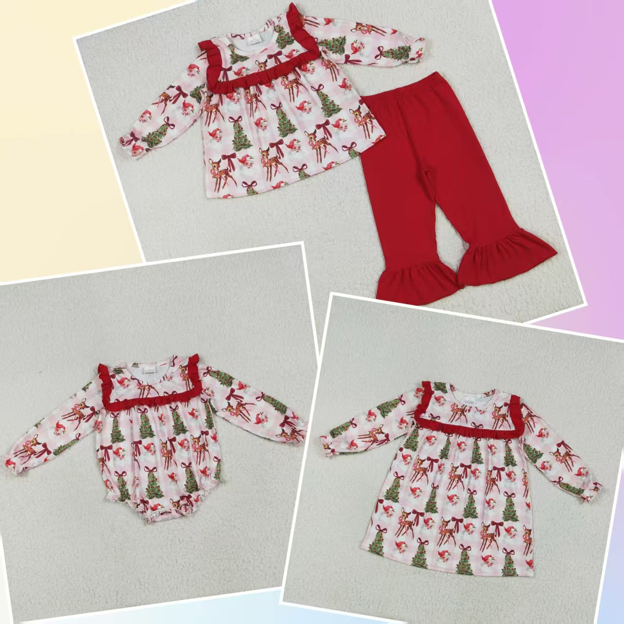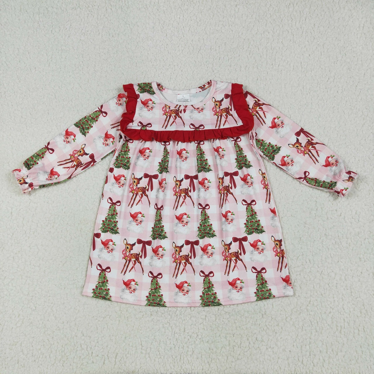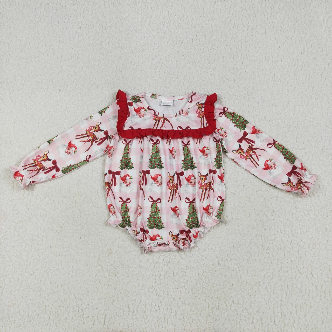 Baby Girl Long Sleeves Christmas Santa Tree Bows Plaid Sibling Romper Dress Set RTS