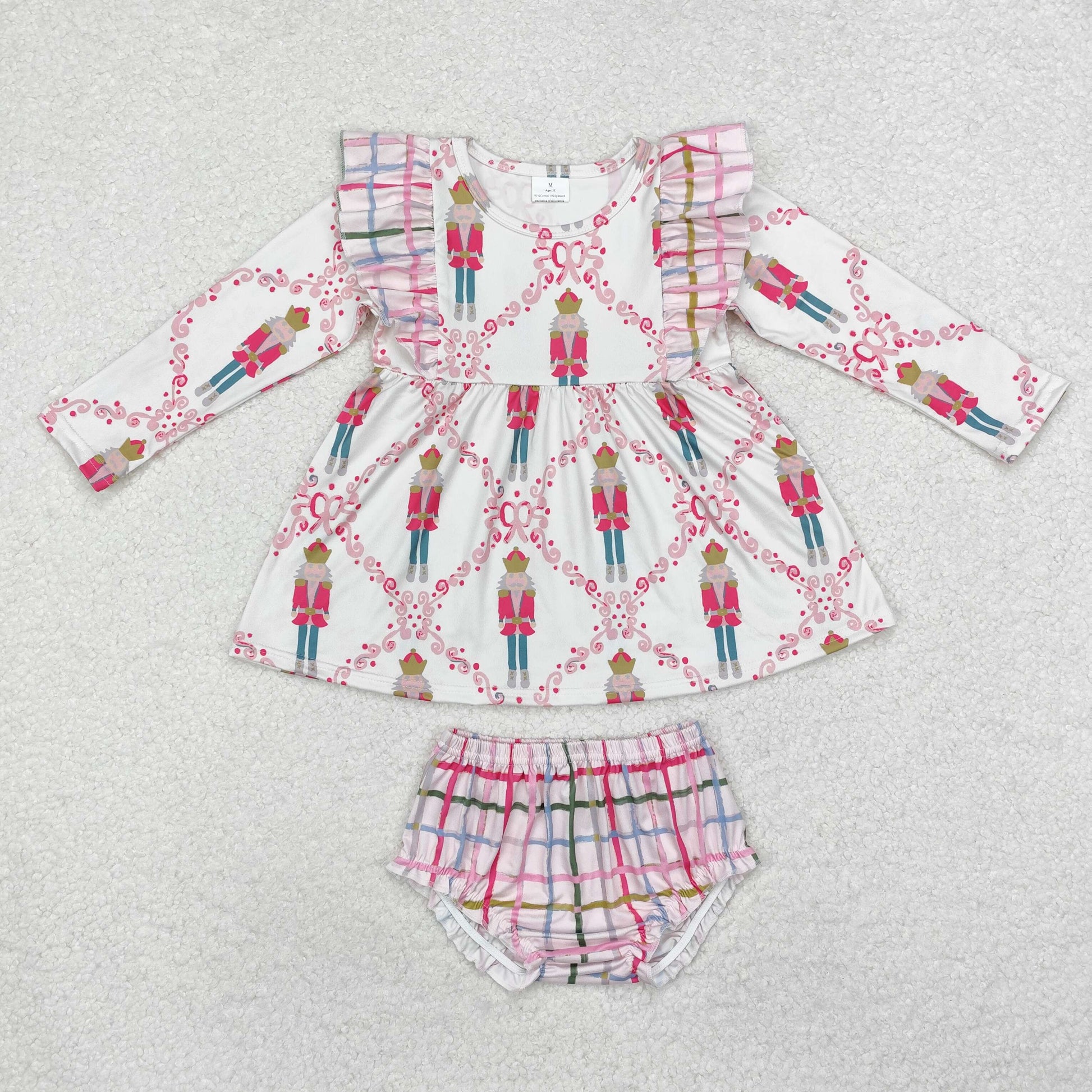 Baby Girl Long Sleeves Christmas Soldier Tunic Plaid Bummies Clothes Set