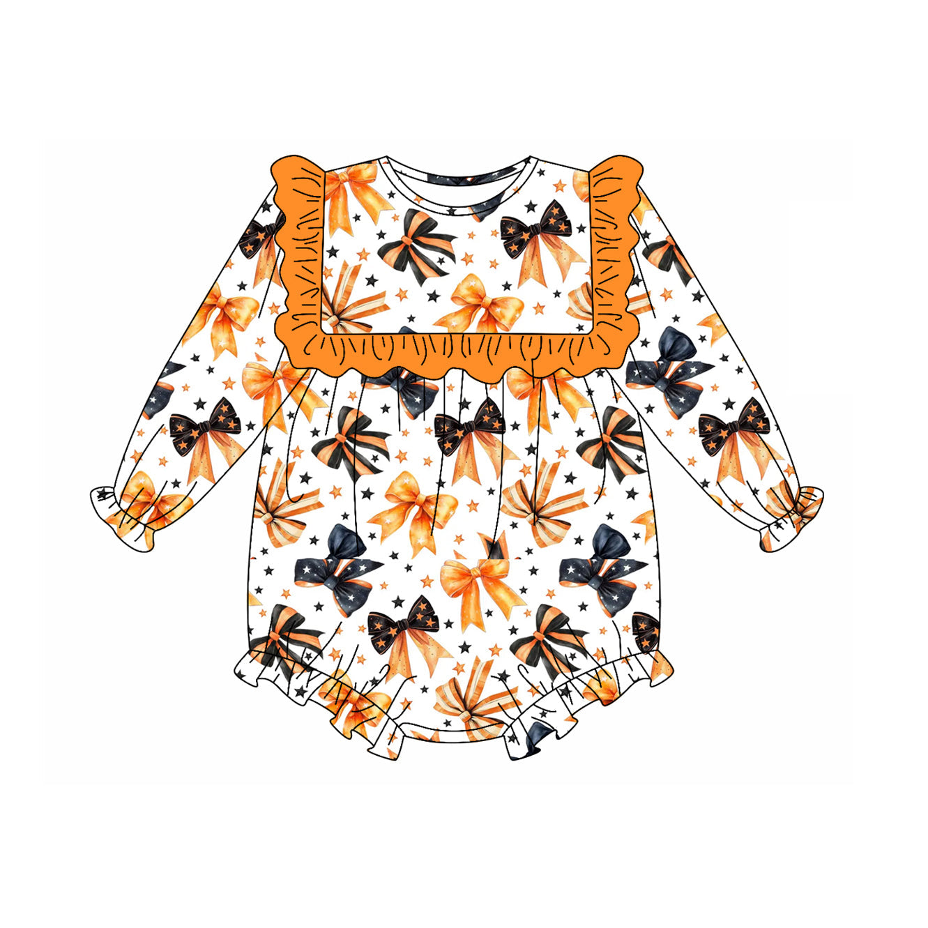 Baby Girl Long Sleeves Colorful Bows Stars Bubble Halloween Romper RTS