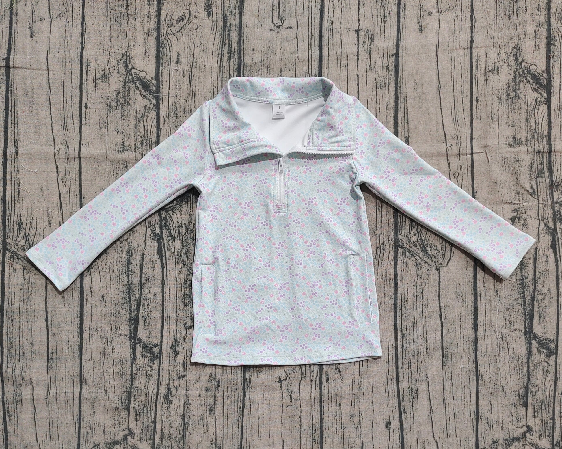 Baby Girl Long Sleeves Floral Zipper Pockets Yoga Shirt Pullover Tops RTS