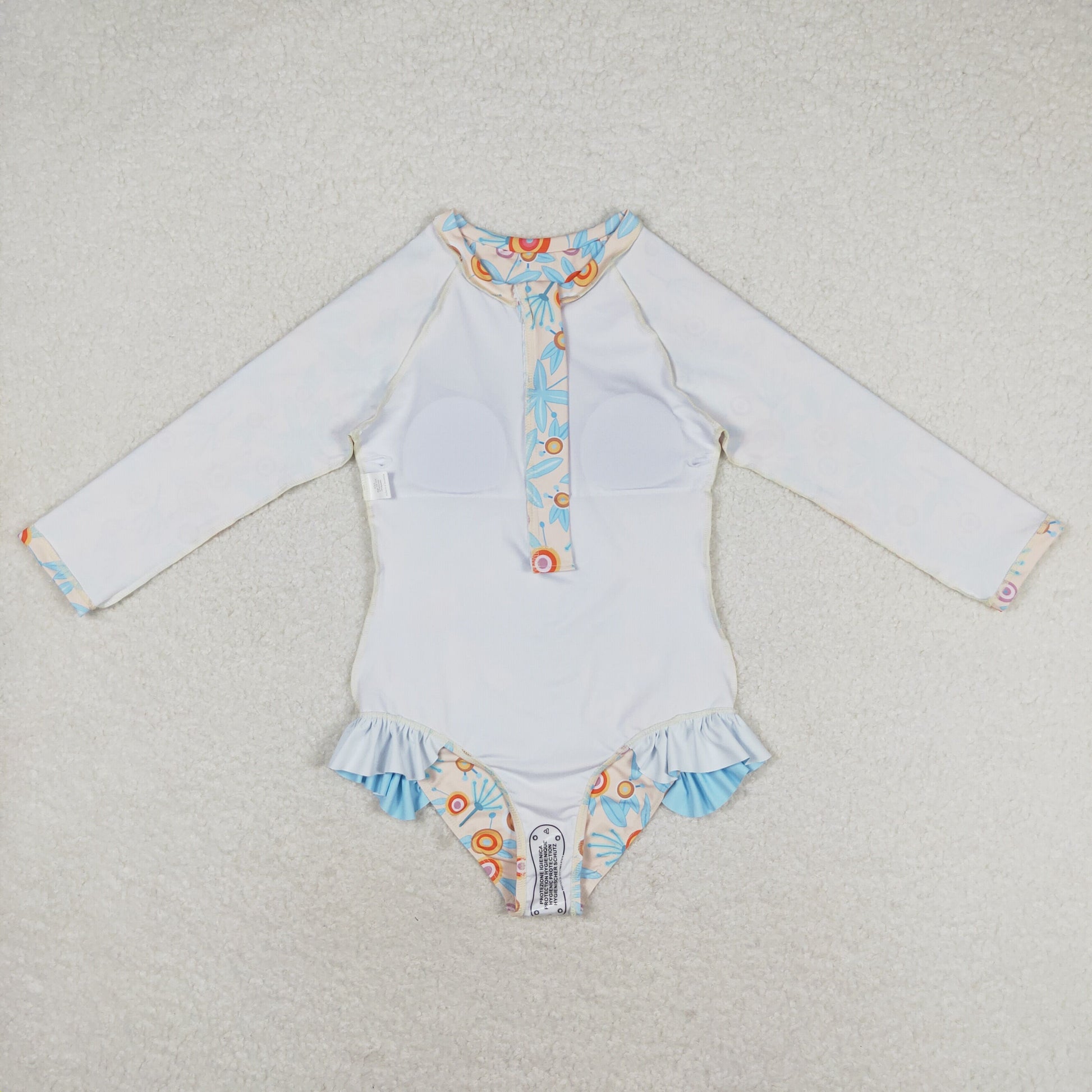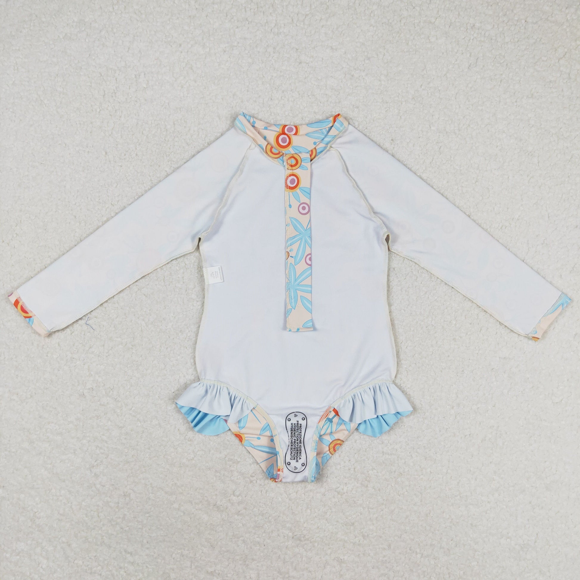 Baby Girl Long Sleeves Flower One Piece Swimsuit