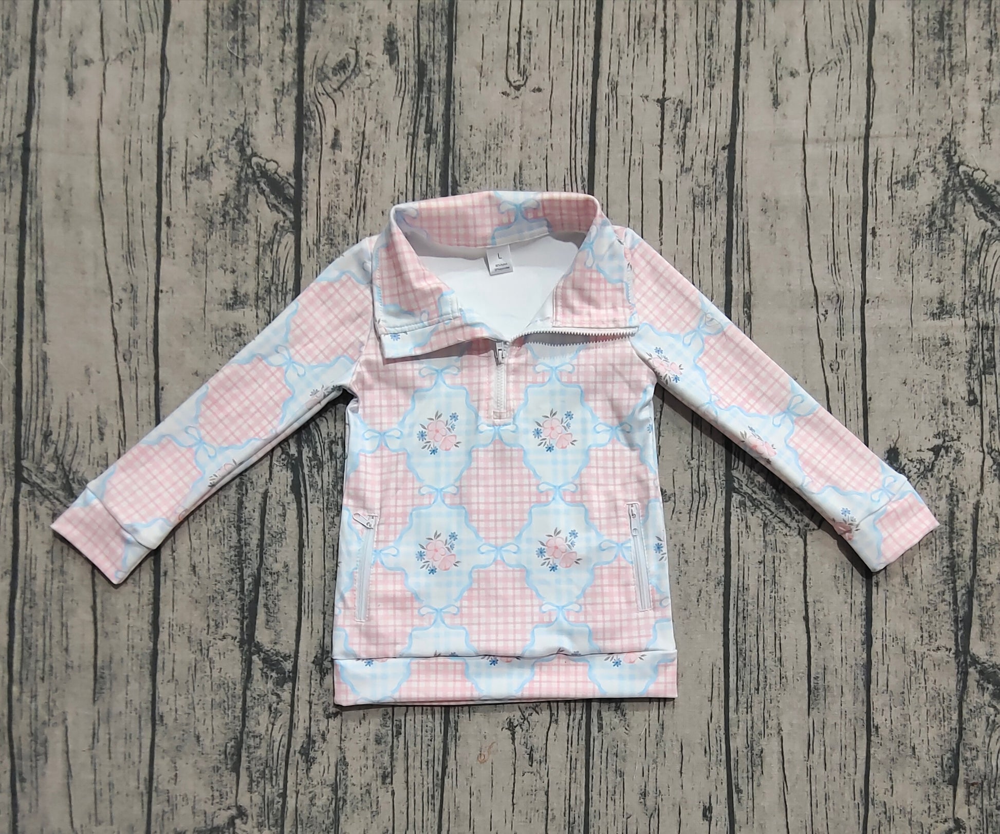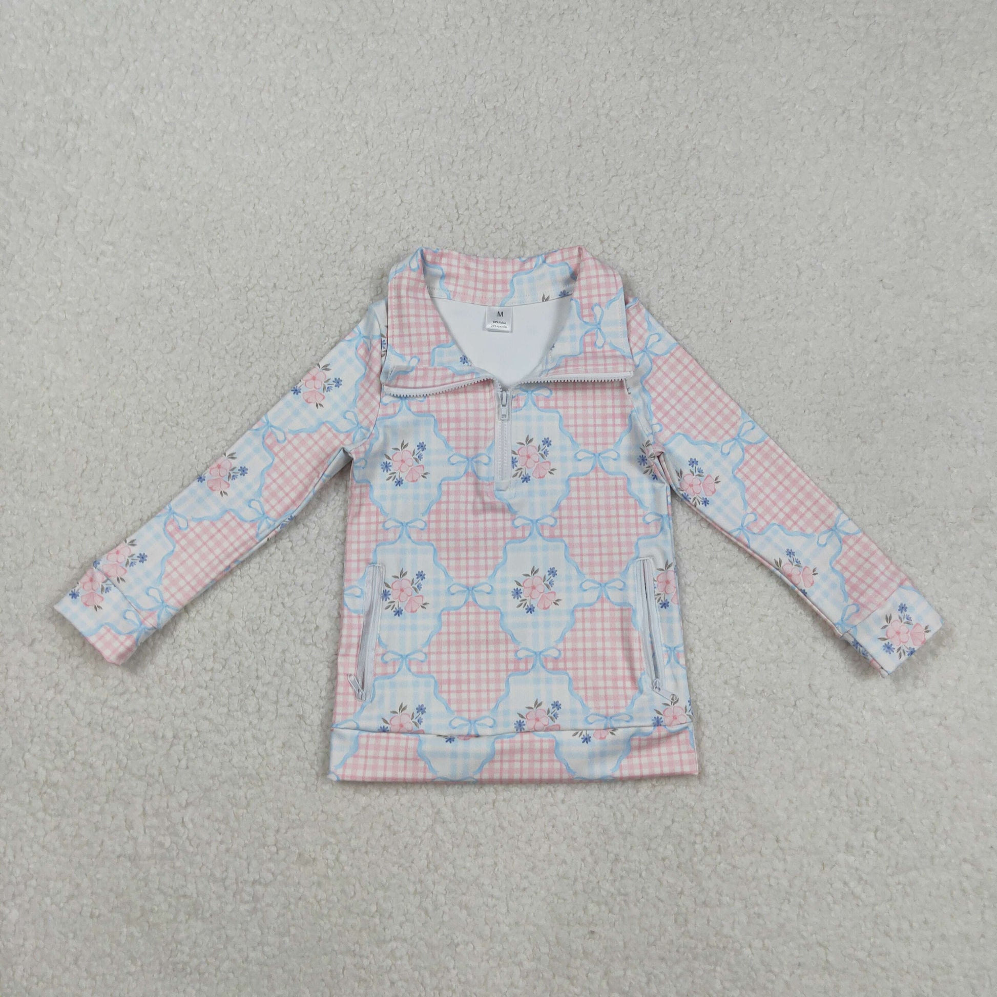 Baby Girl Long Sleeves Flower Plaid Yoga Active Zipper Pullover Shirt RTS