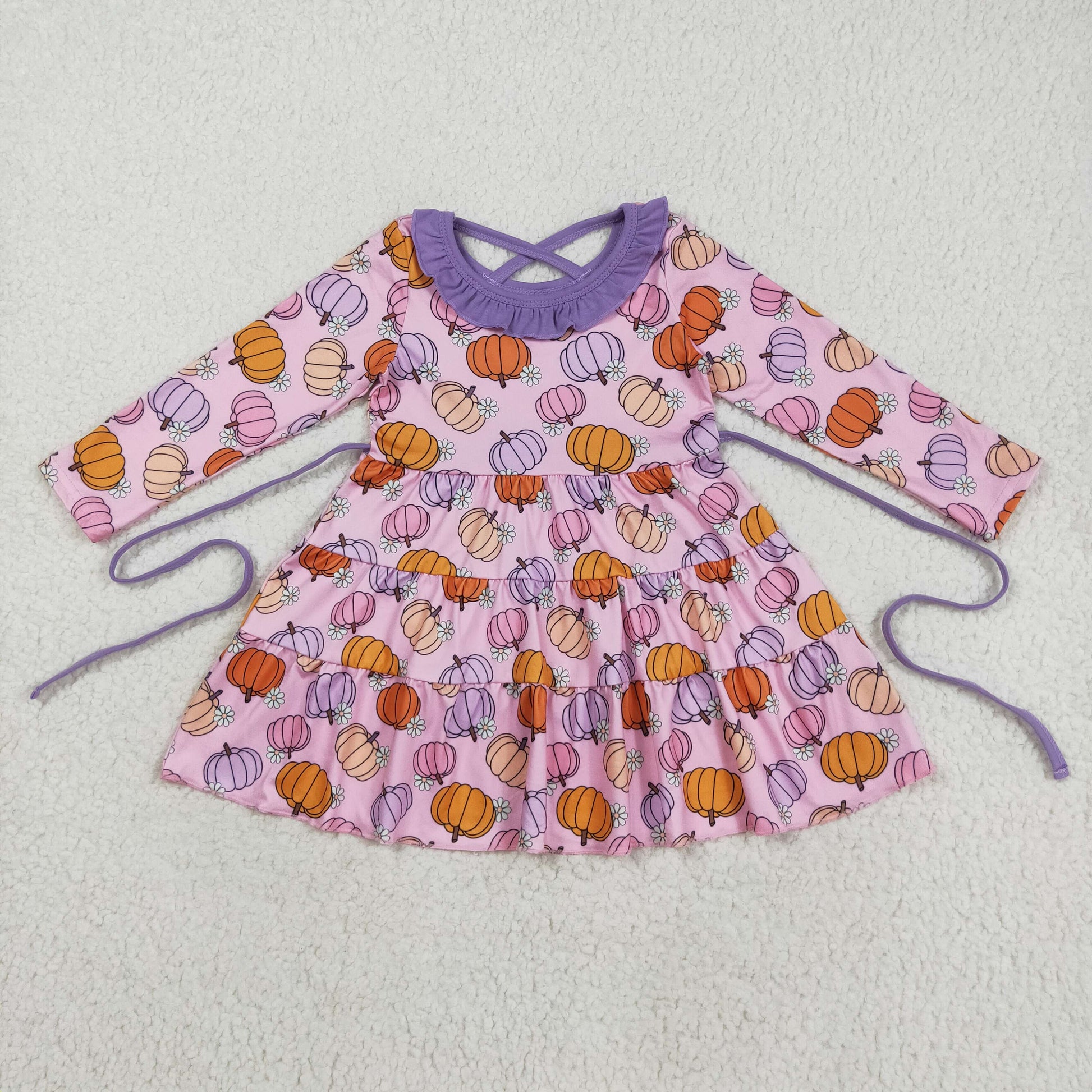 Baby Girl Long Sleeves Flower Pumpkins Knee Length Dress RTS
