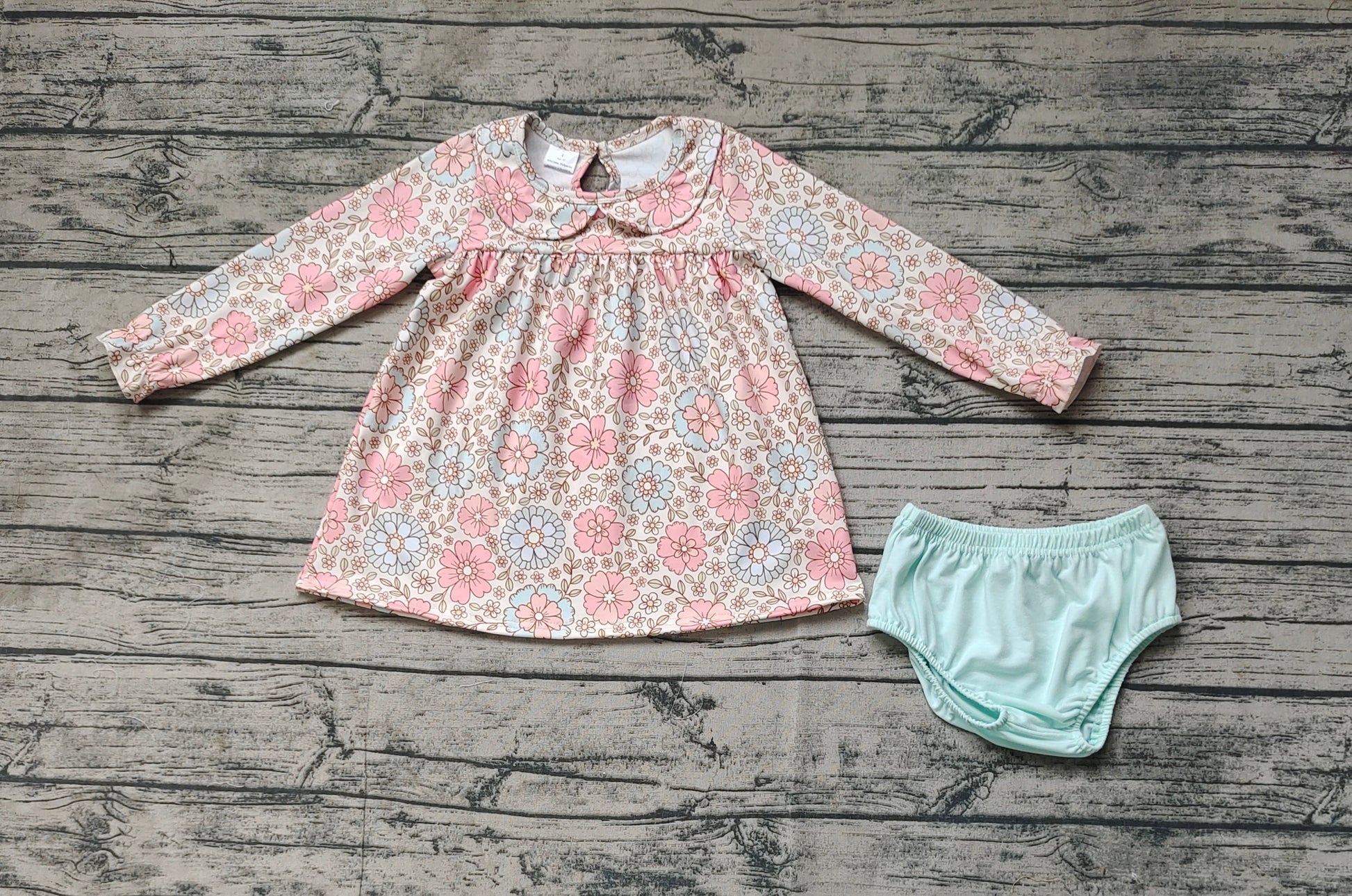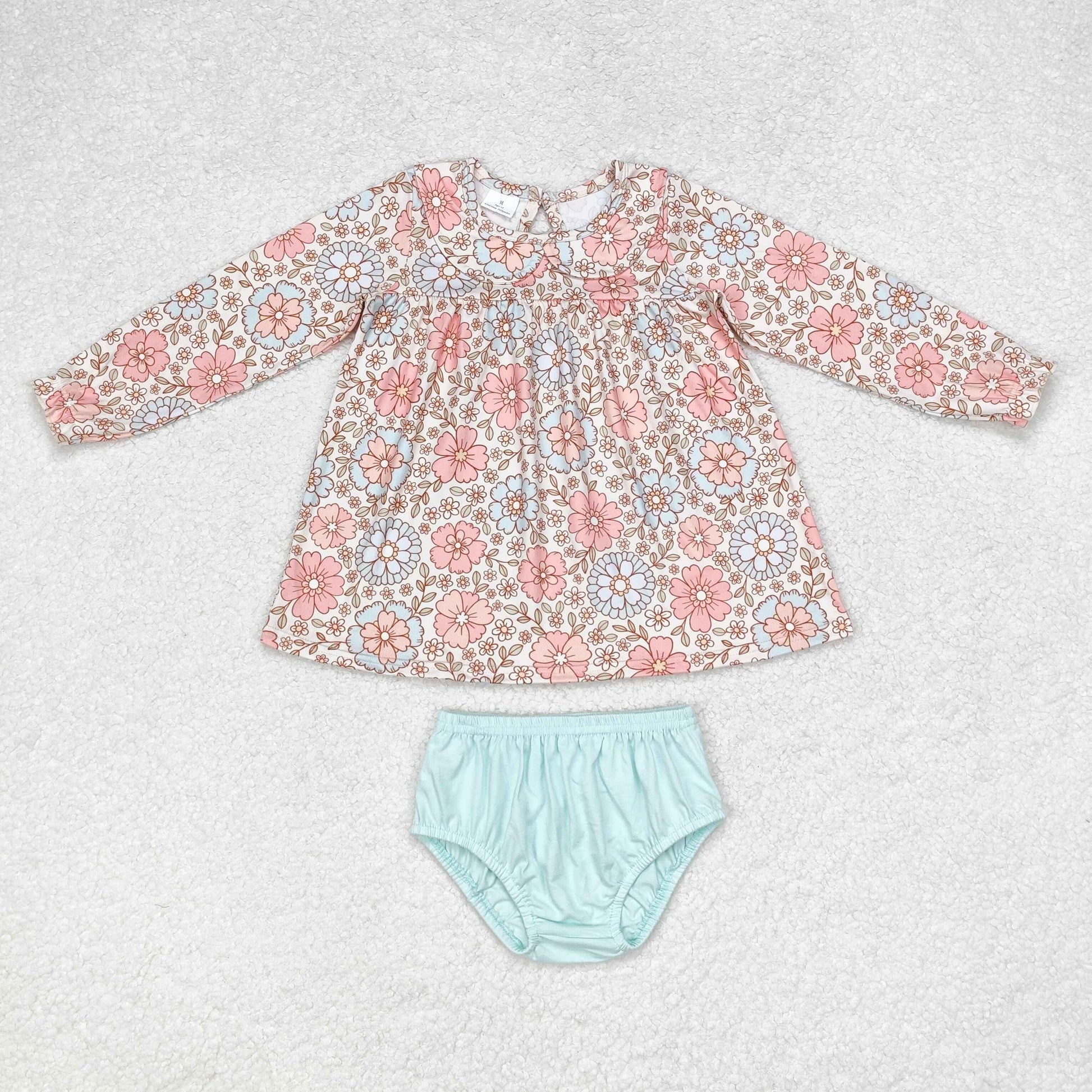Baby Girl Long Sleeves Flower Tunic Blue Bummies Set
