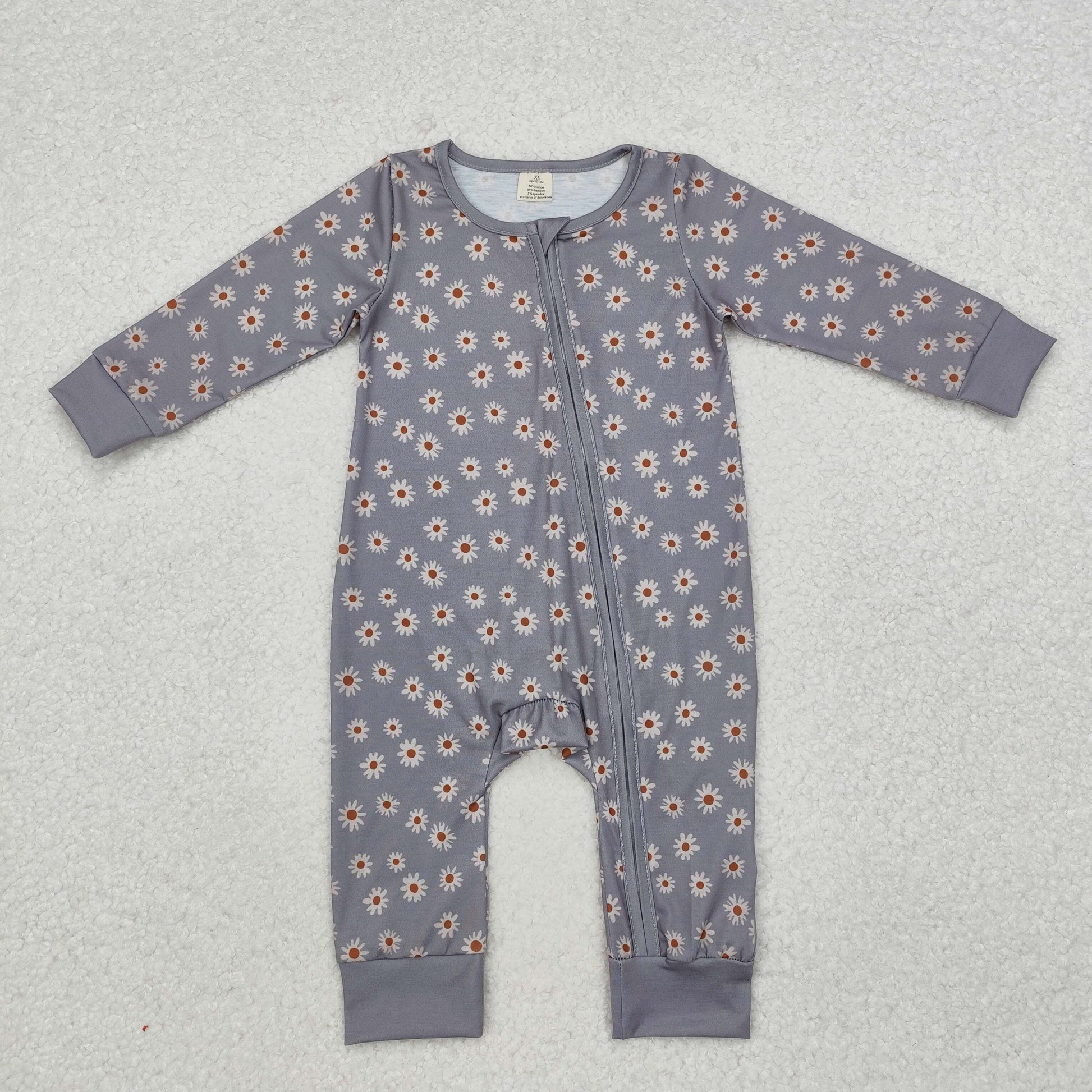 Baby Girl Long Sleeves Flower Zipper Bamboo Romper