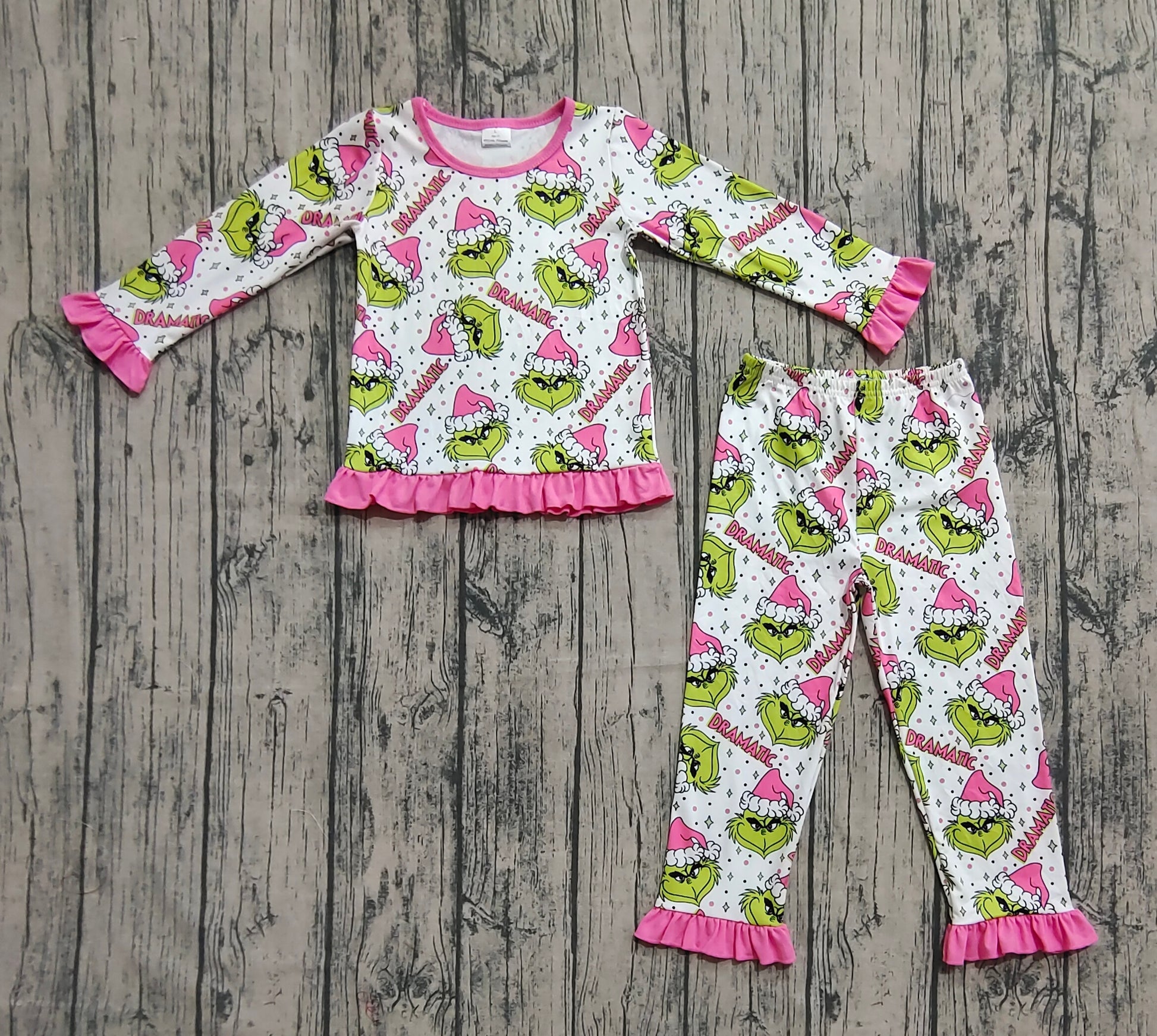 Baby Girl Long Sleeves Green Face Shirt Pants Christmas Pink Pajamas Set RTS