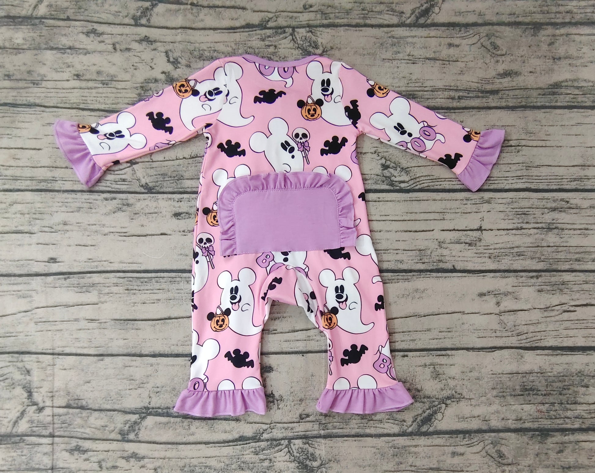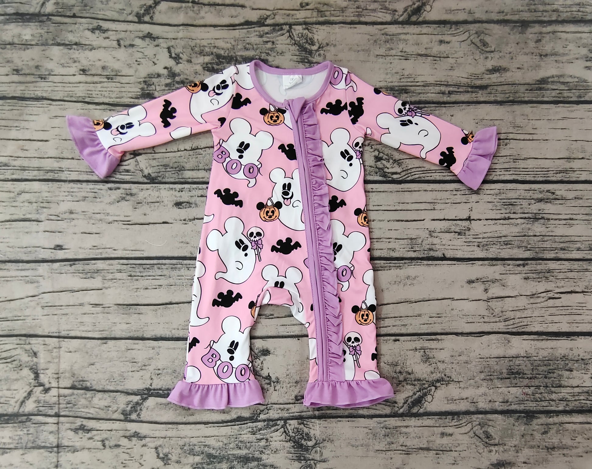 Baby Girl Long Sleeves Halloween Ghost Zipper Long Sleeves Romper