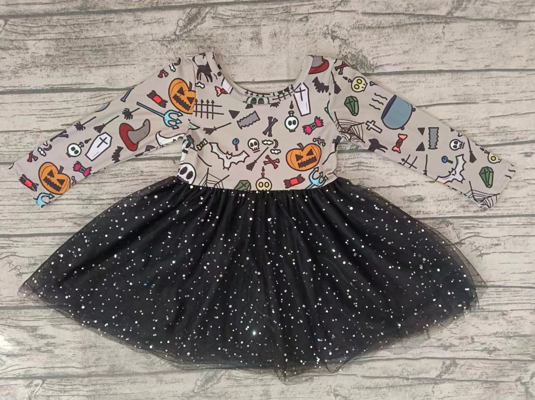 Baby Girl Long Sleeves Halloween Pumpkin Tulle Dress Moq 5