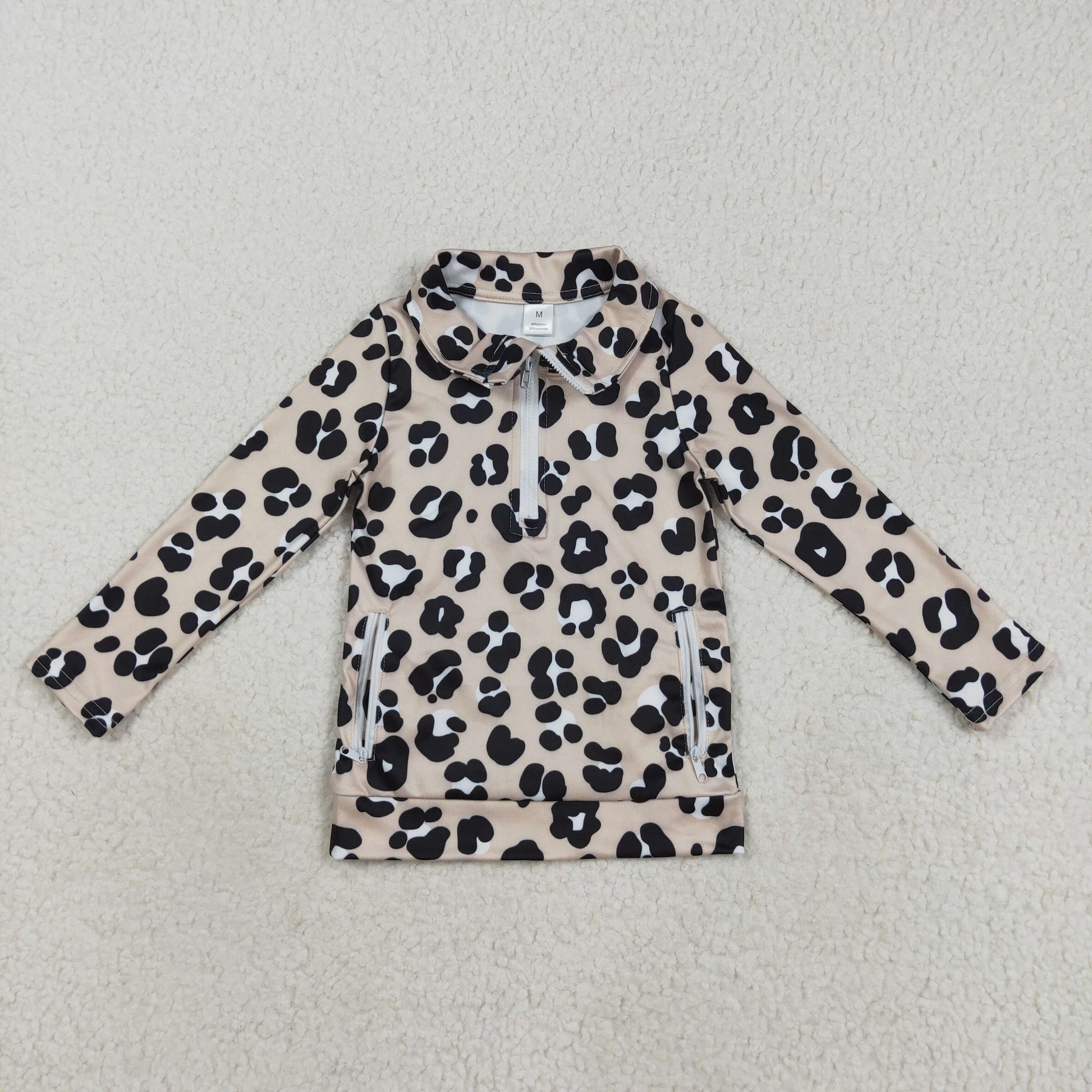 Baby Girl Long Sleeves Leopard Yoga Active Zipper Pullover Tops RTS