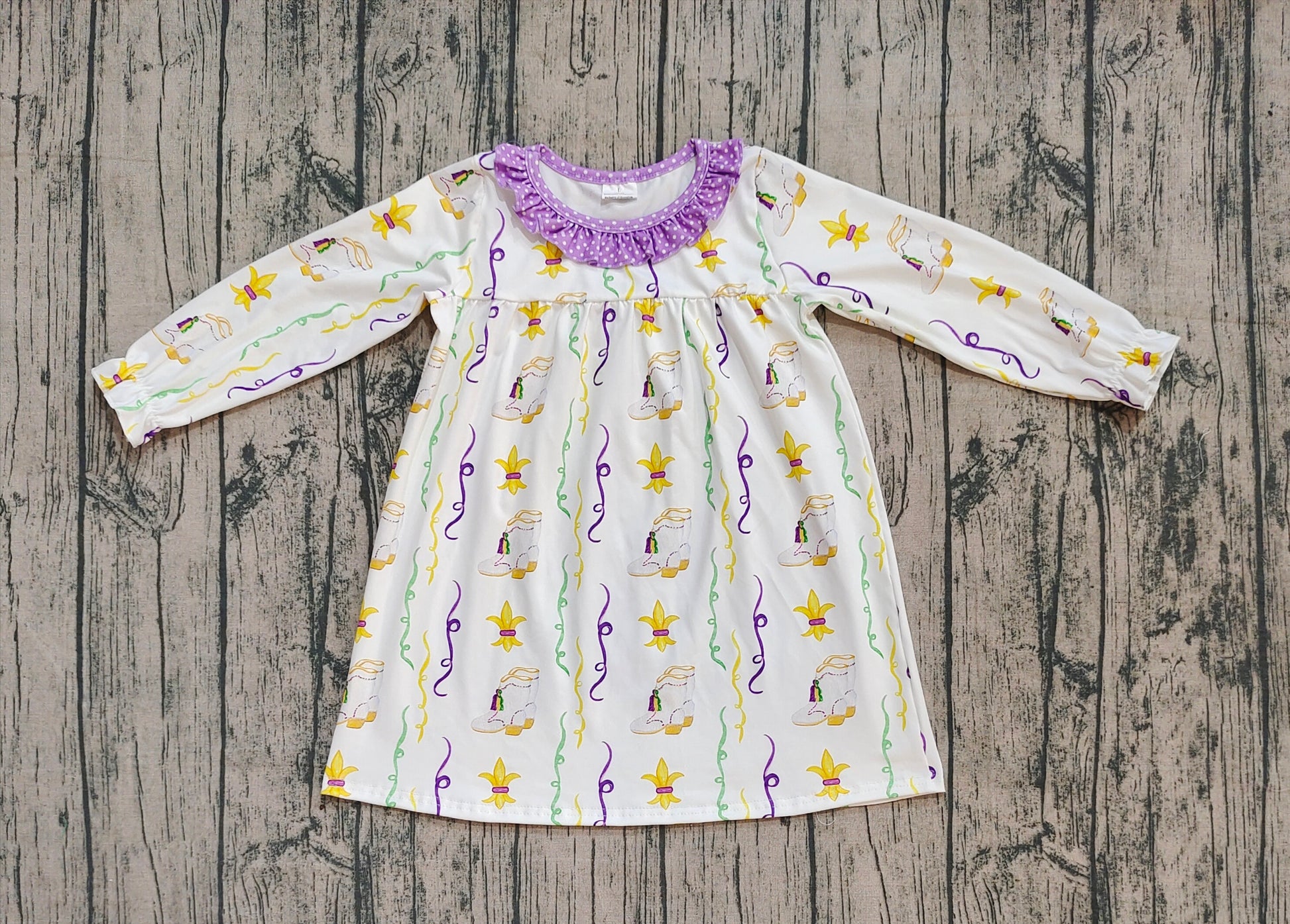Baby Girl Long Sleeves Mardi Gras Purple Ruffle Knee Length Dress RTS