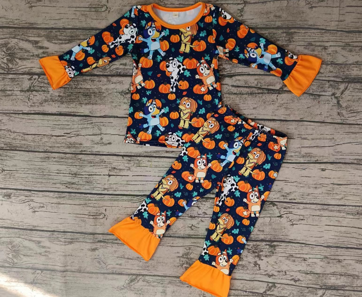 Baby Girl Long Sleeves Pumpkin Dogs Shirt Pants Fall Pajamas Outfit Moq 5