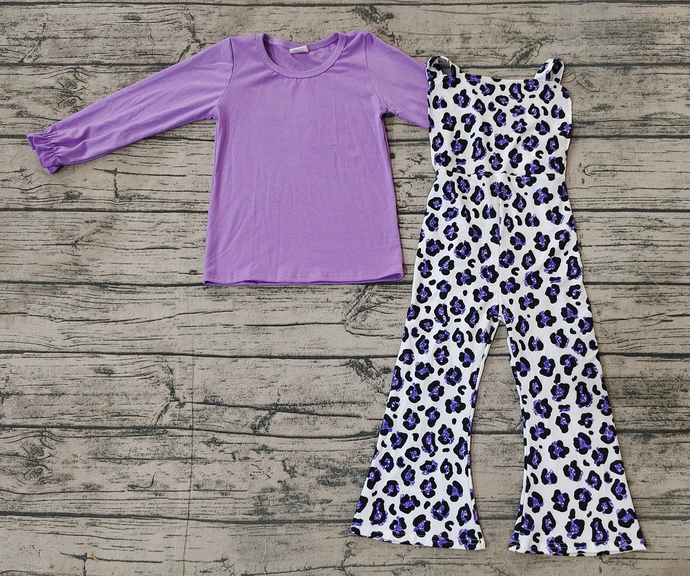Baby Girl Long Sleeves Purple Shirt Leopard Jumpsuit Set