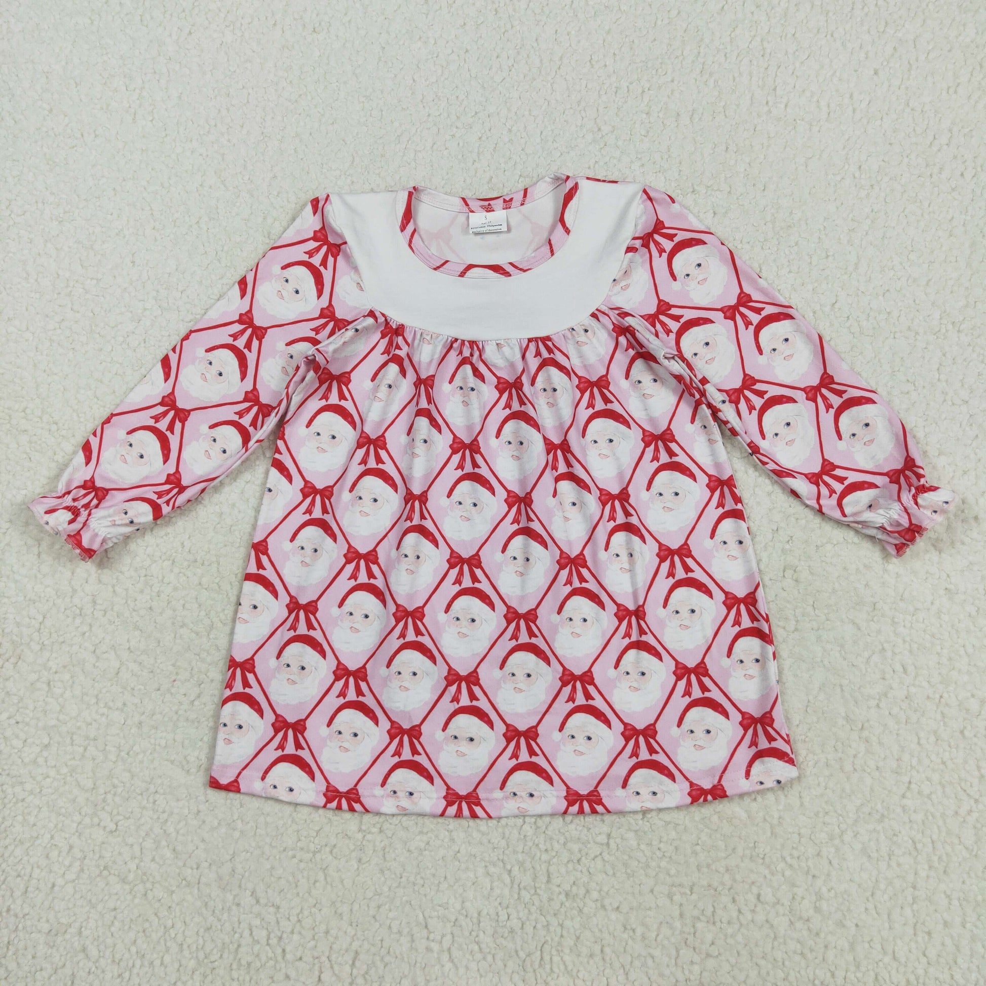 Baby Girl Long Sleeves Red Blows Santa Christmas Knee Length Dress RTS
