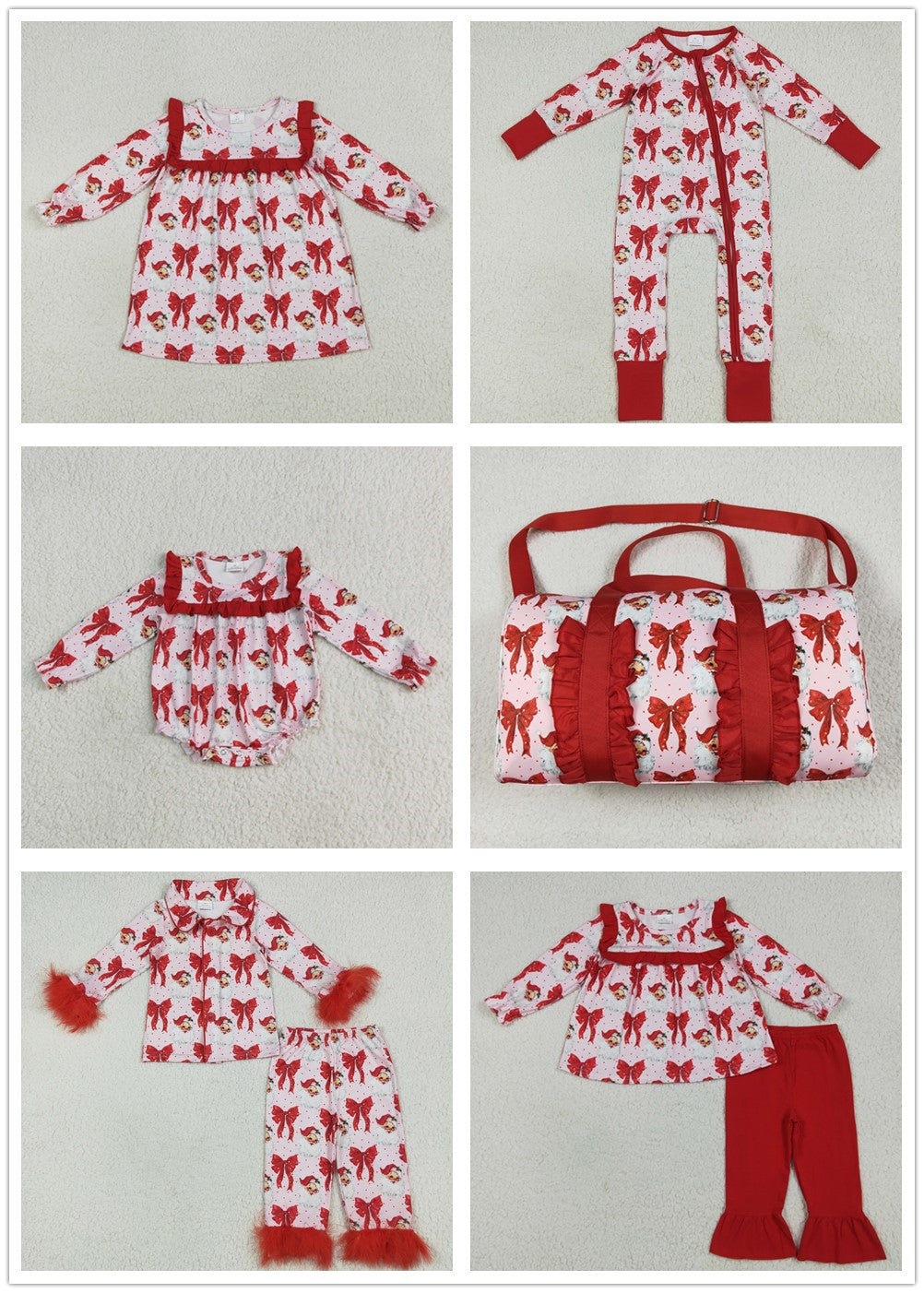 Baby Girl Long Sleeves Santa Red Bows Sibling Christmas Romper Dress Outfit RTS