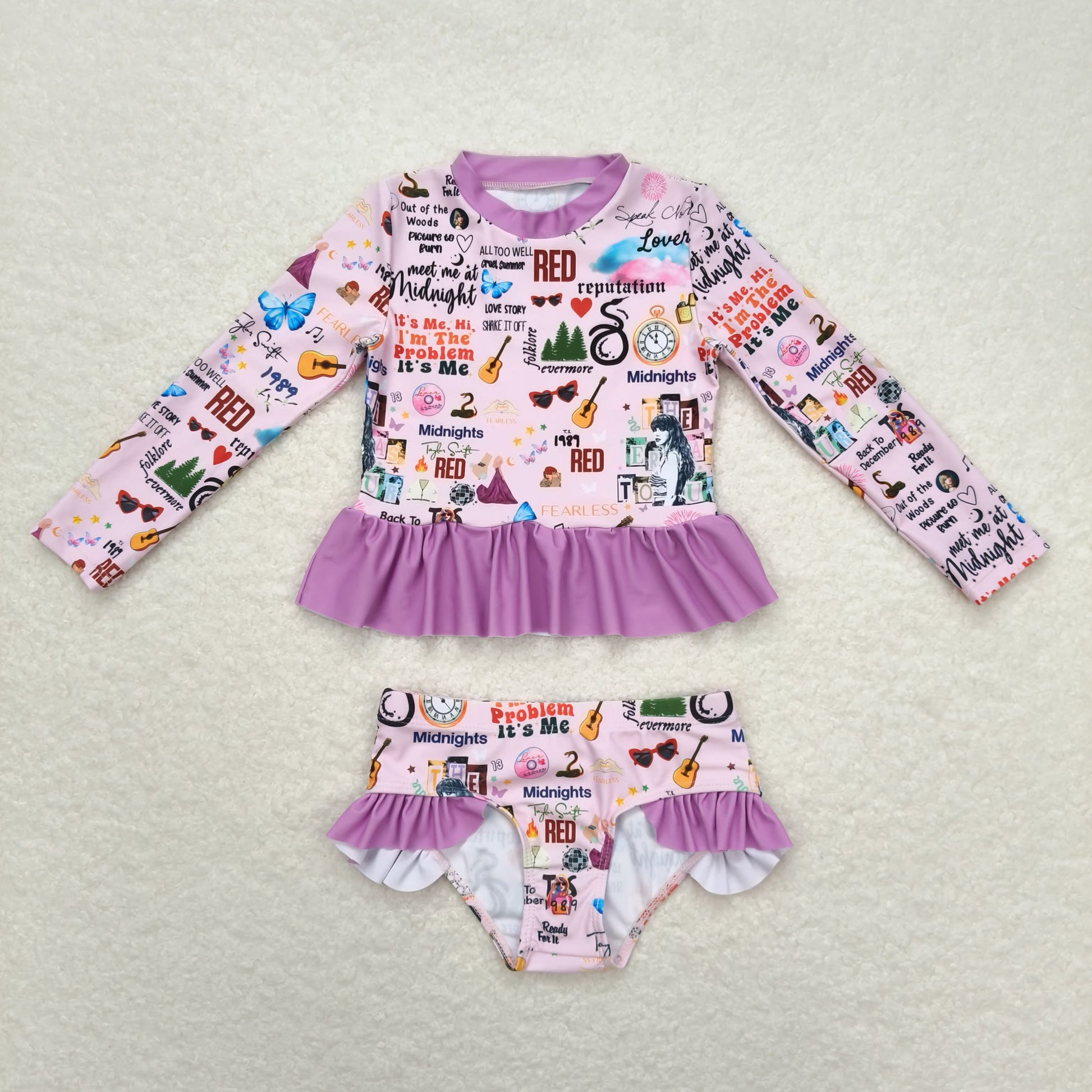 Baby Girl Long Sleeves Singer Tops Shorts Pink Swimsuit