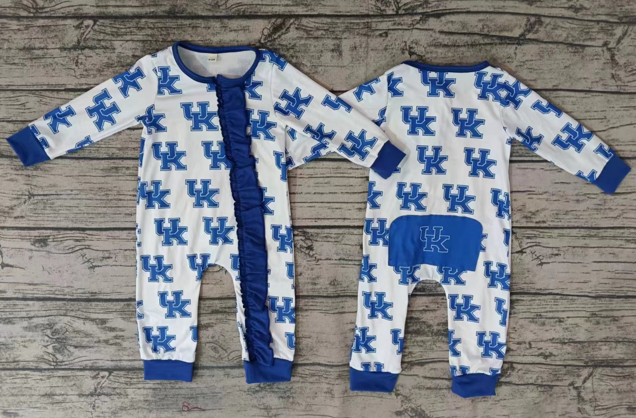 Baby Girl Long Sleeves Team Blue Zipper Romper Moq 5