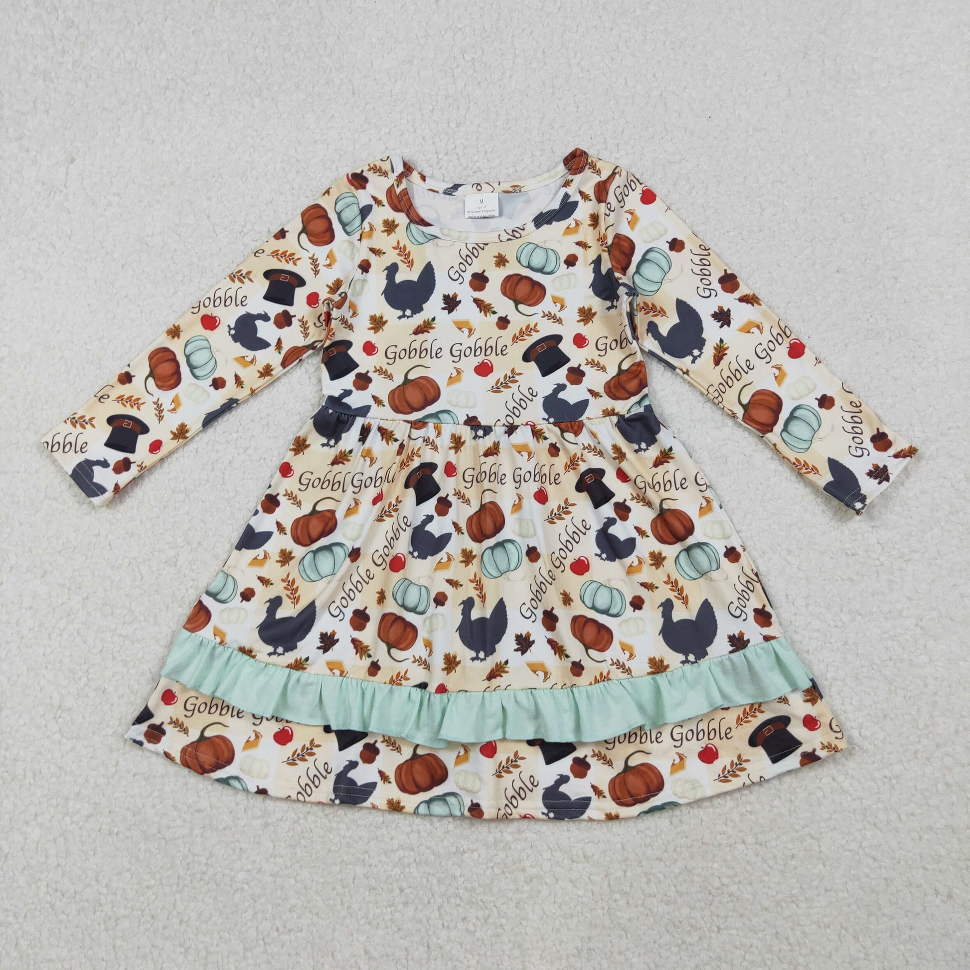 Baby Girl Long Sleeves Thanksgiving turkey Pumpkin Dress RTS