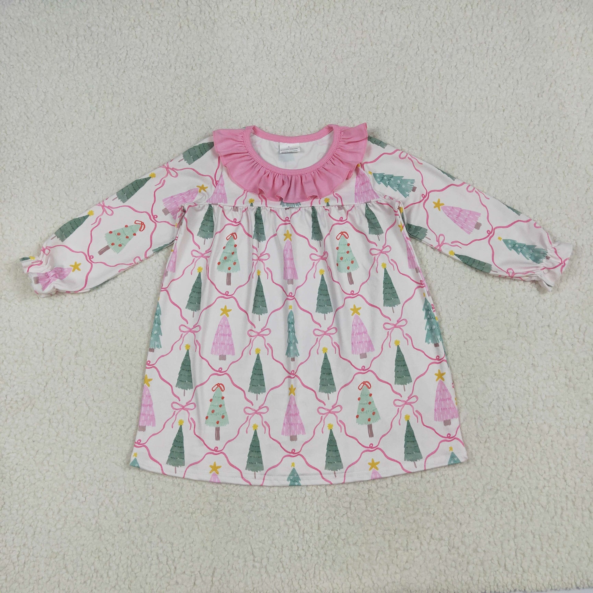 Baby Girl Long Sleeves Tree Bows Christmas Ruffle Knee Length Dress RTS