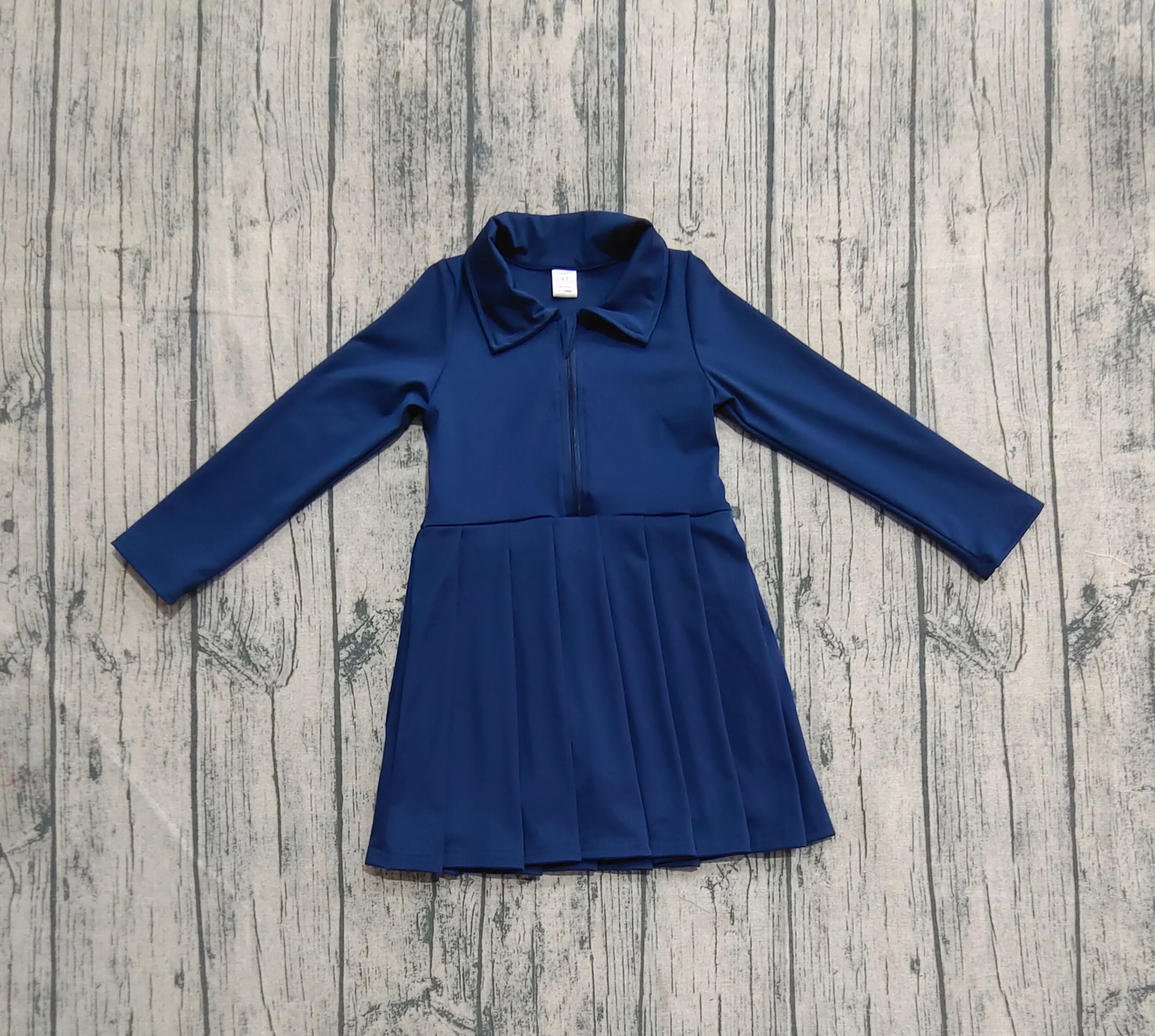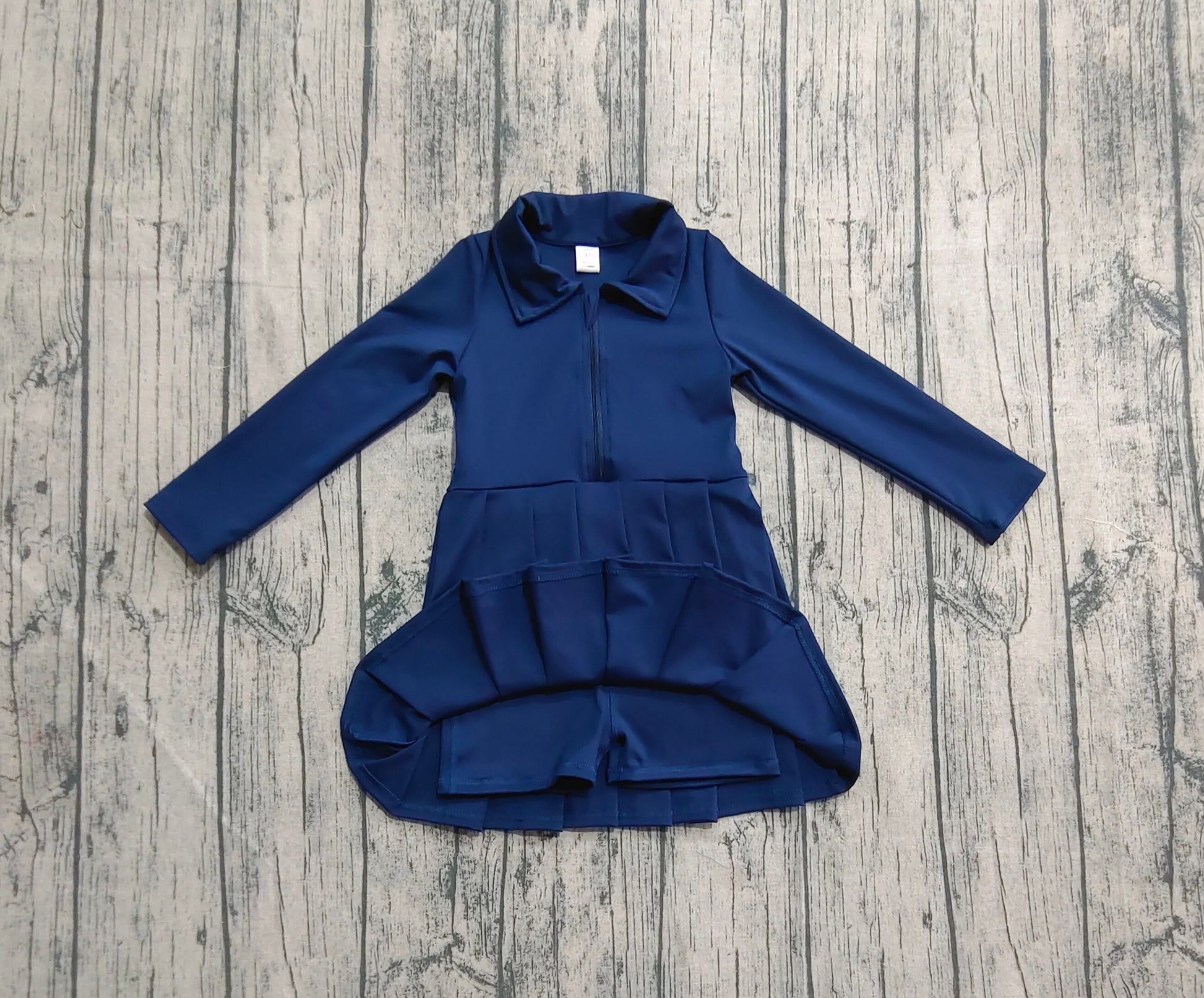 Baby Girl Long Sleeves Zipper Knee Length Yoga Active Navy Blue Dress RTS