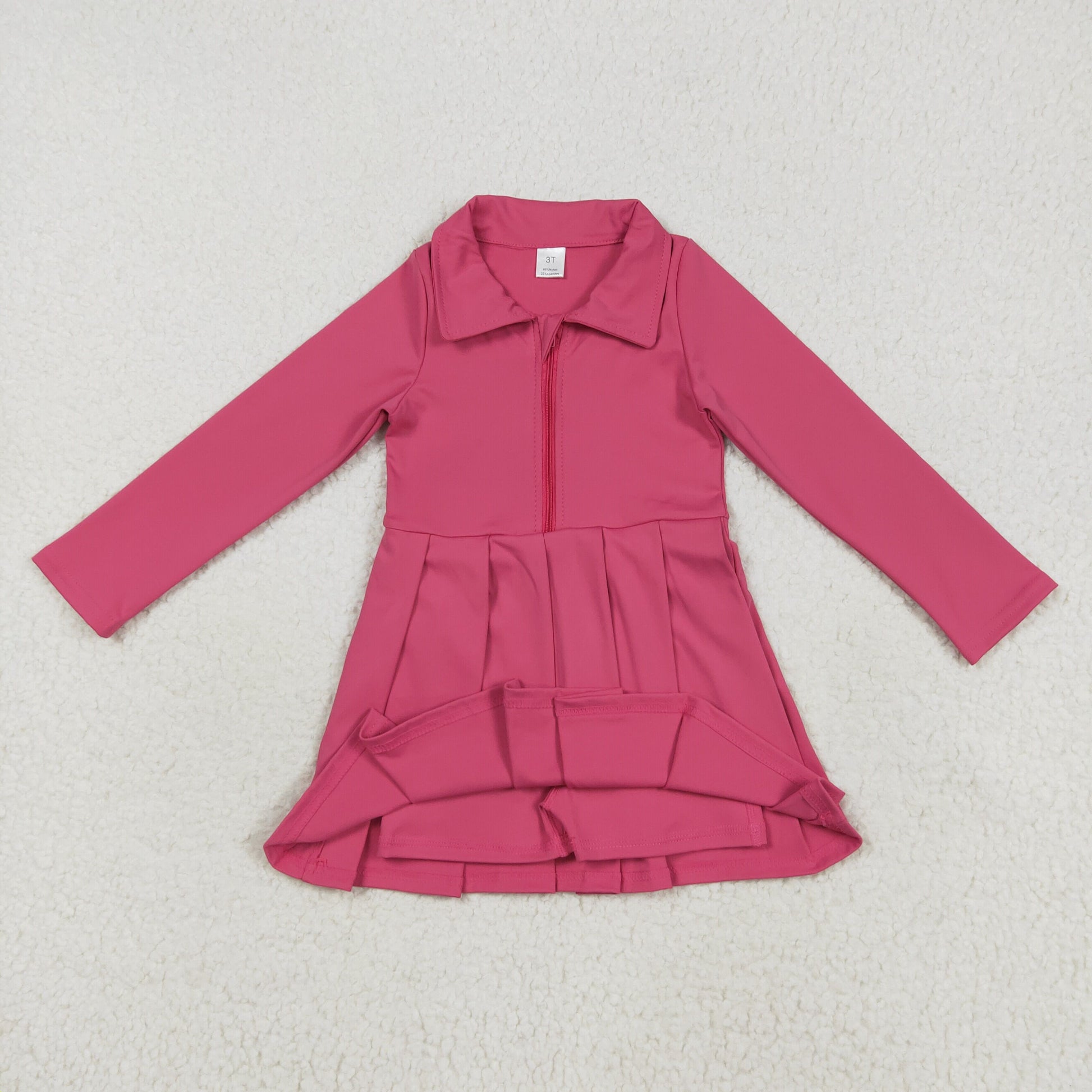 Baby Girl Long Sleeves Zipper Knee Length Yoga Active Pink Dress RTS