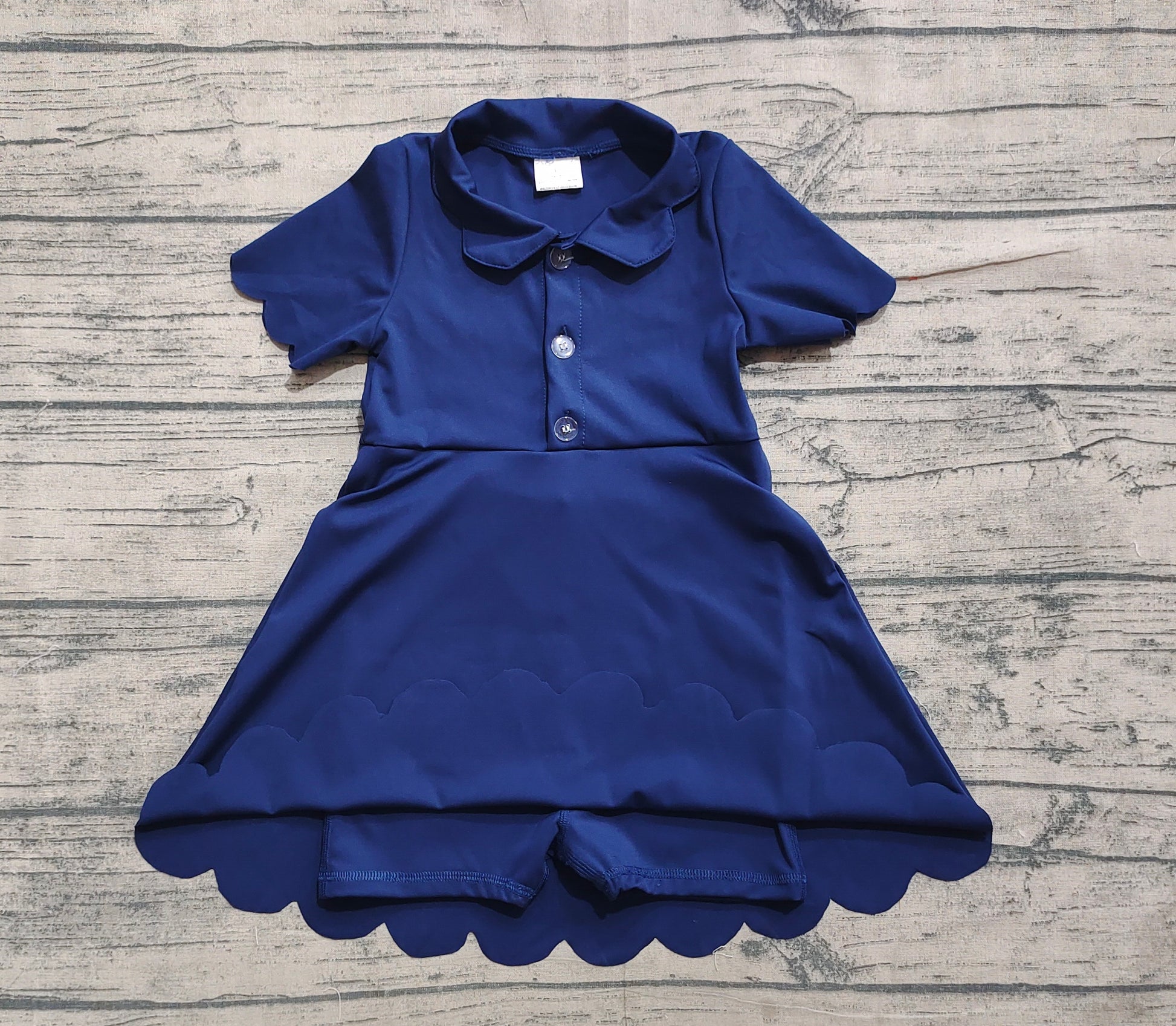 Baby Girl Navy Short Sleeves Buttons Yoga Active Knee Length Skort Dress RTS