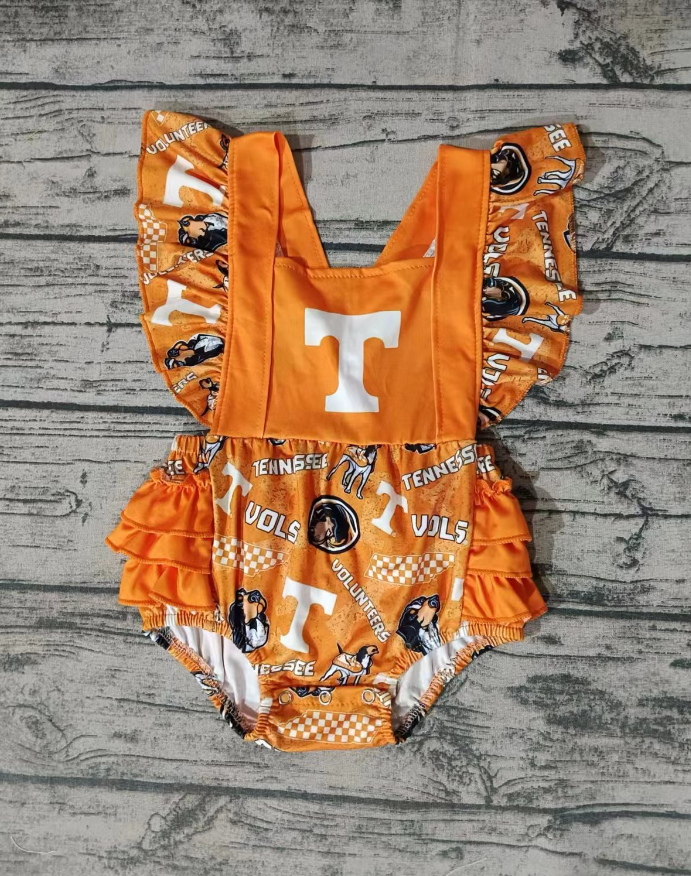 Baby Girl Orange Team Ruffle Dog Romper Moq 5