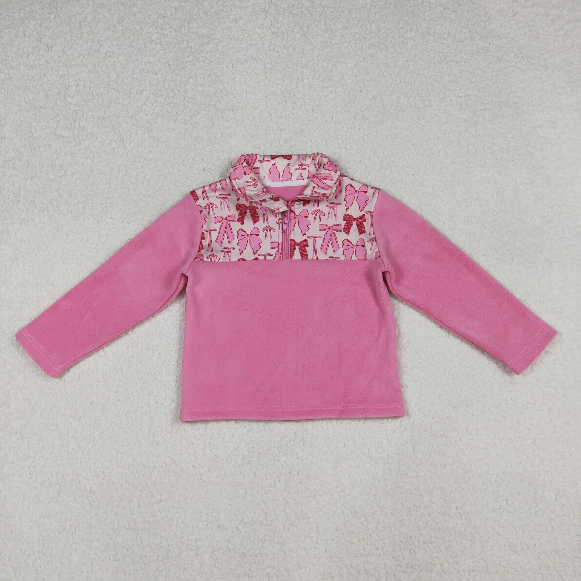 Baby Girl Pink Long Sleeves Bows Zipper Fleece Pullover Shirt RTS