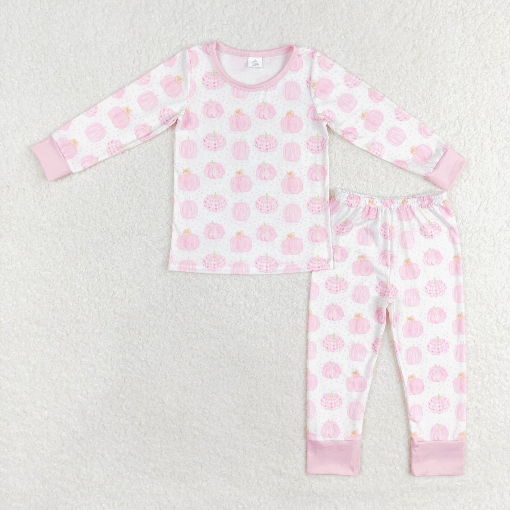 Baby Girl Pink Pumpkin Shirt Pants Bamboo Pajamas Set