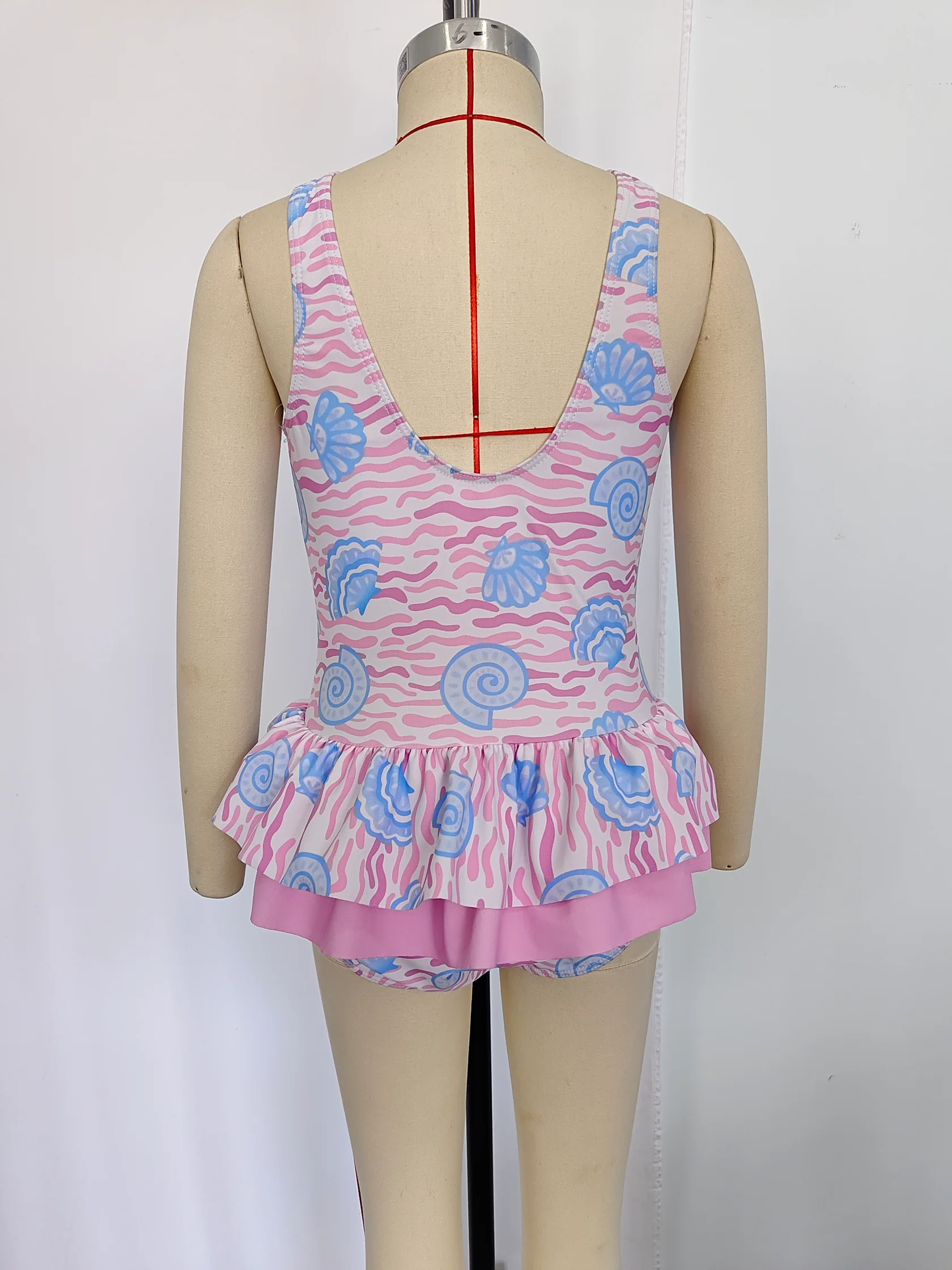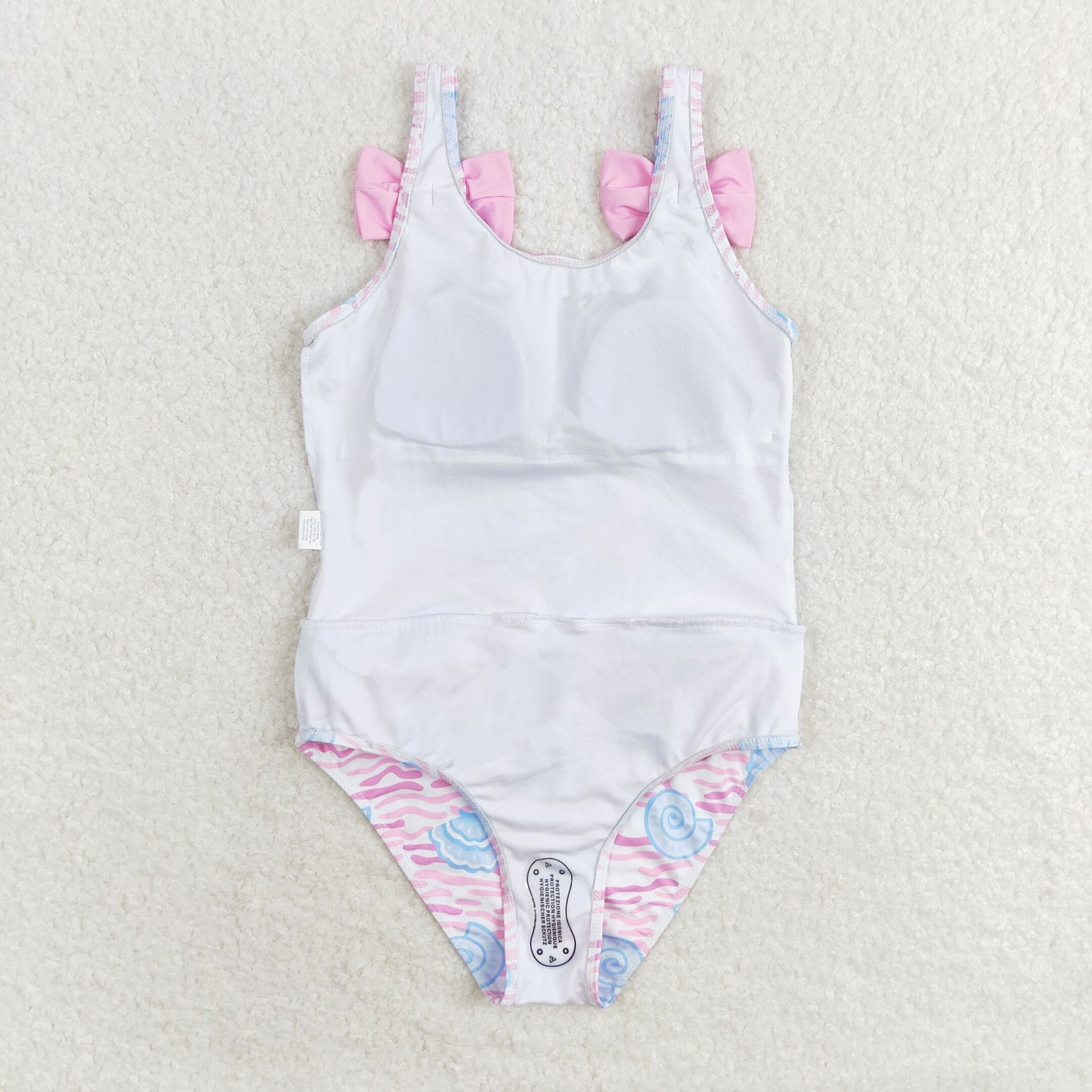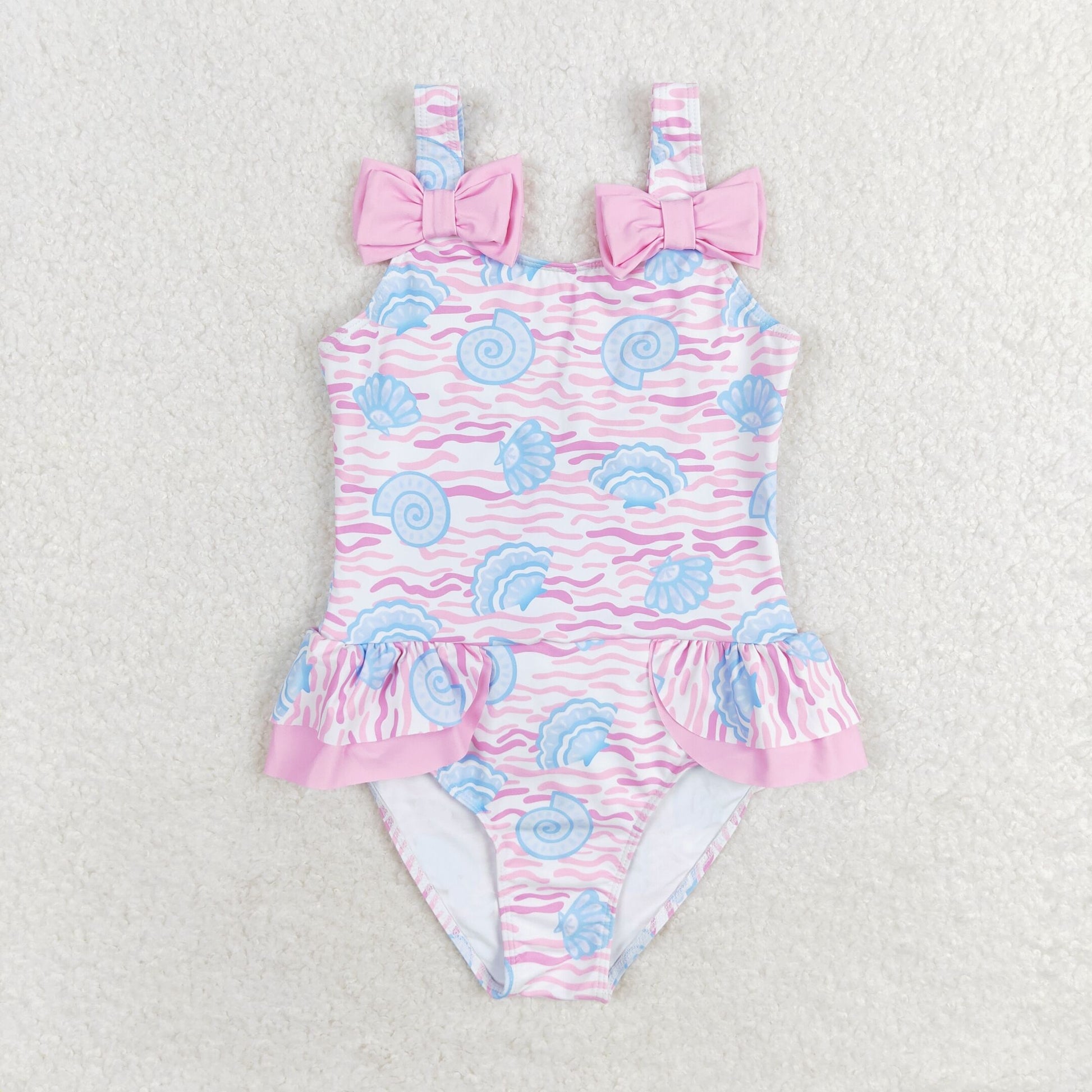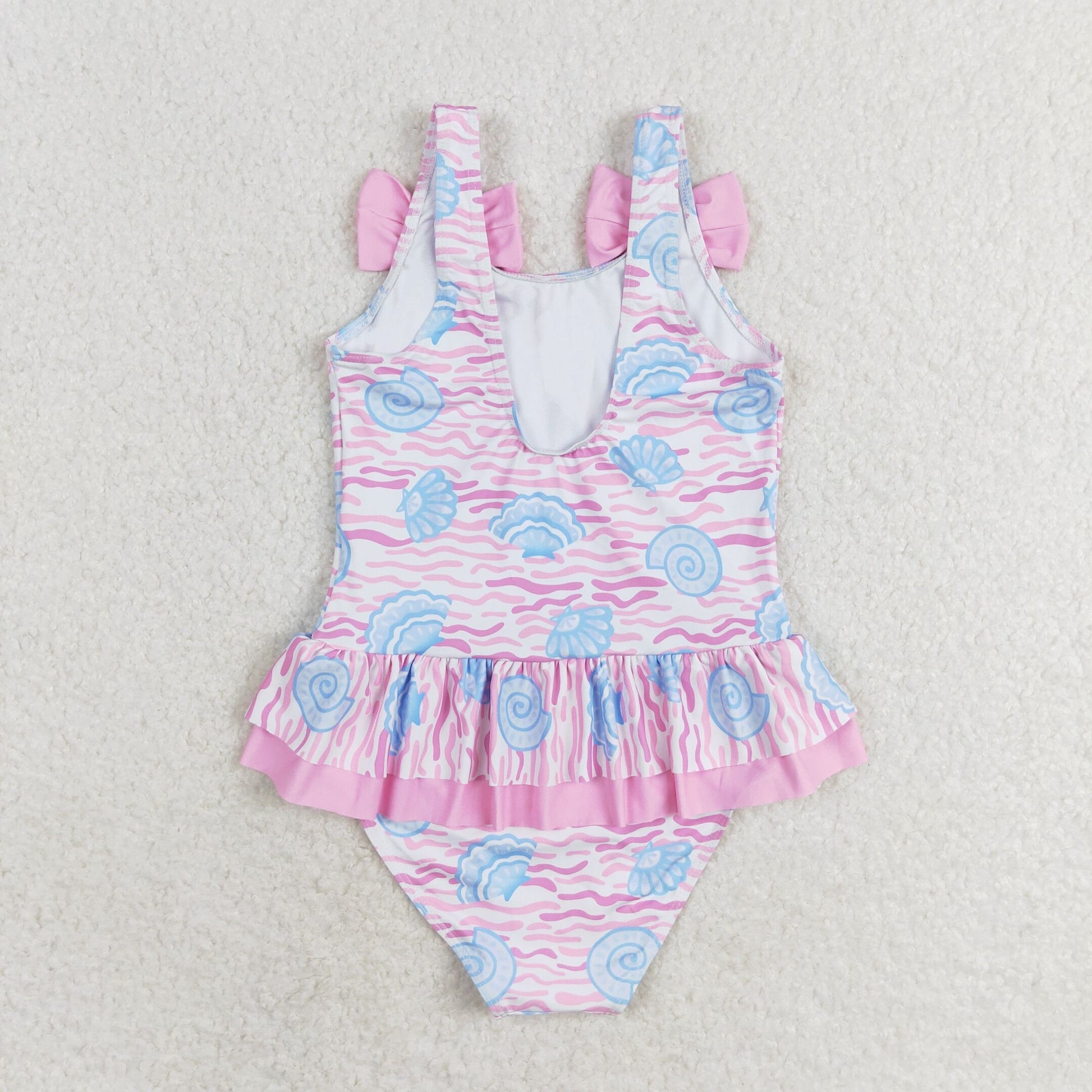 Baby Girl Pink Sea Shell Ruffle One Piece Bows Swimsuit