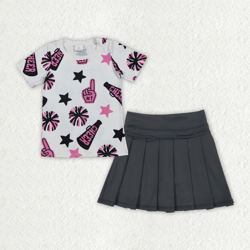 Baby Girl Short Sleeveless Stars Cheer Shirt Pockets Black Yoga Active Shorts Skort Set RTS