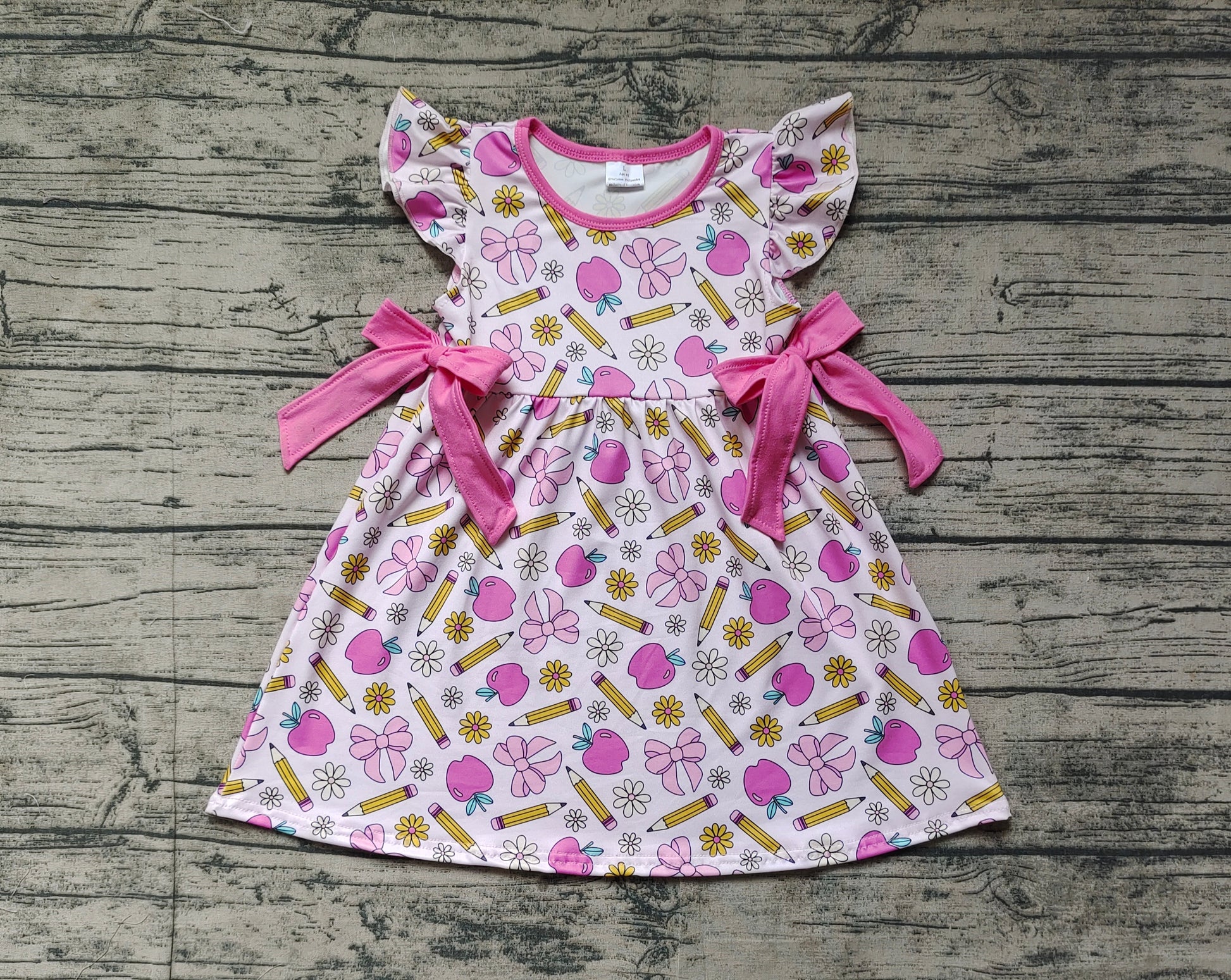 Baby Girl Short Sleeves Back To School Bows Knee Length Dress RTS