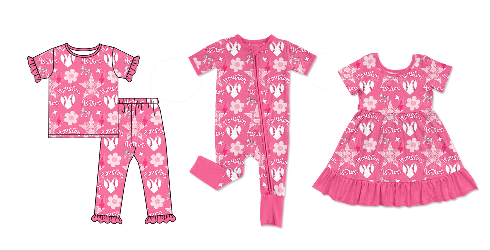 Baby Girl Short Sleeves Bows Baseball Sibling Blue Romper Dress Clothes Set ( Moq 5 Each Design )11.30