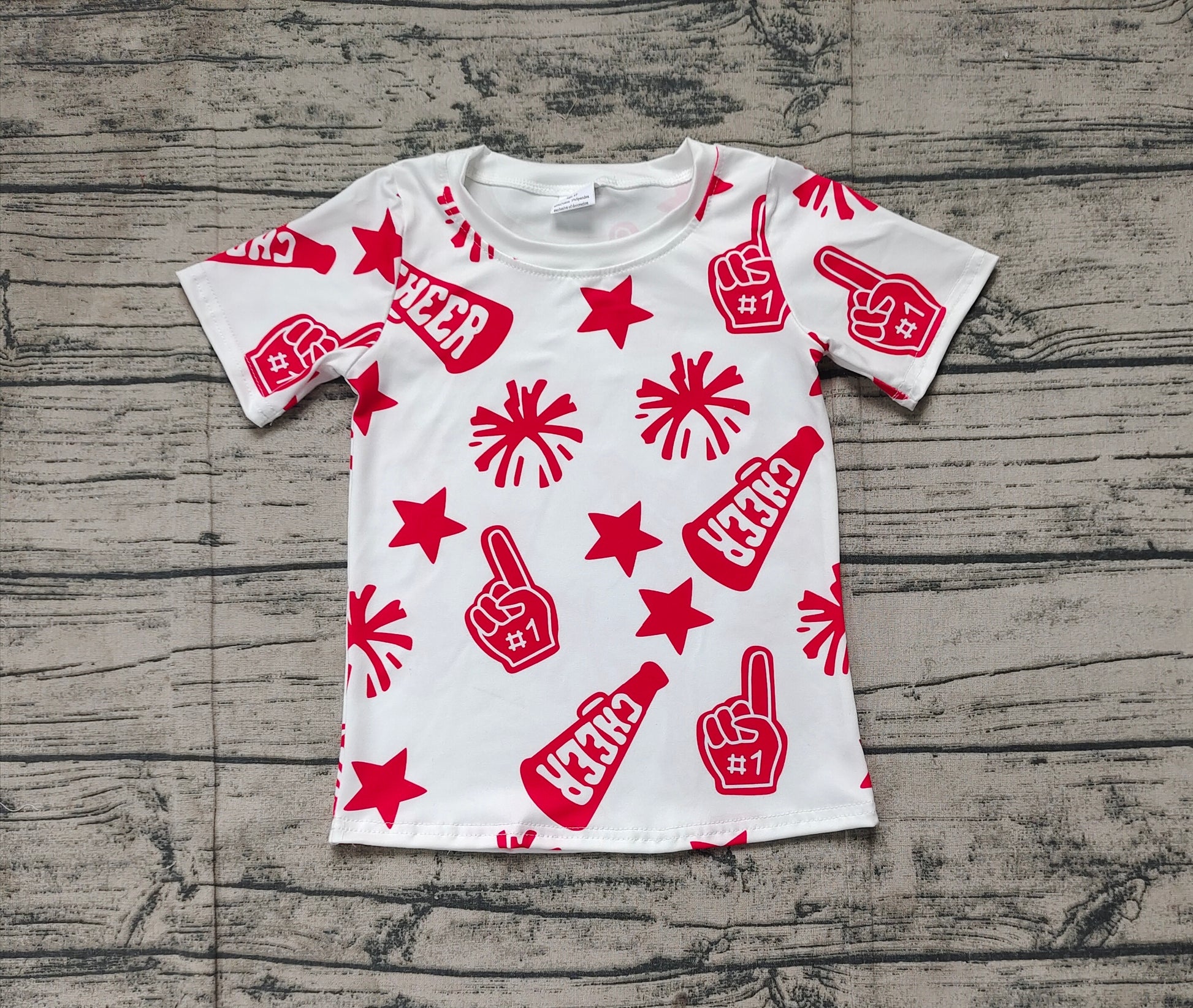 Baby Girl Short Sleeves Cheer Team Red Tee Shirt Tops RTS