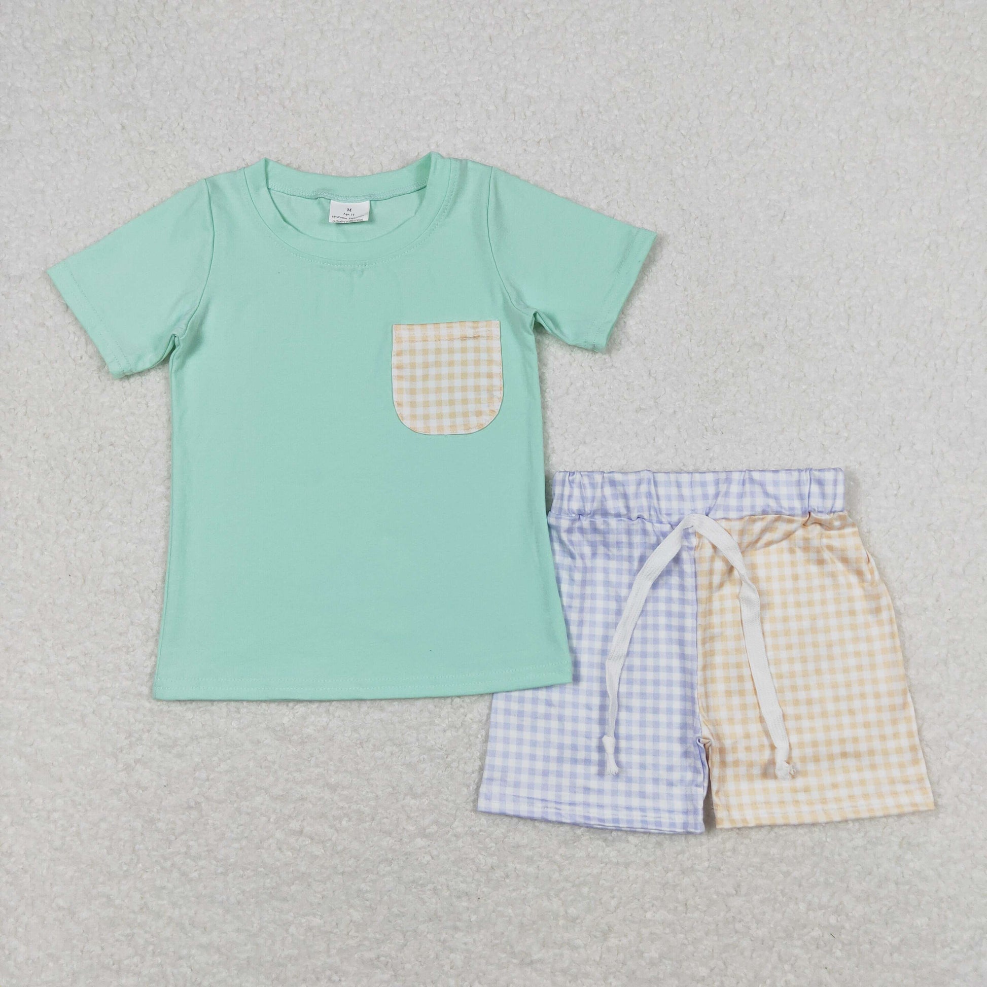 Baby Girl Short Sleeves Colorful Plaid Tunic Shorts Set