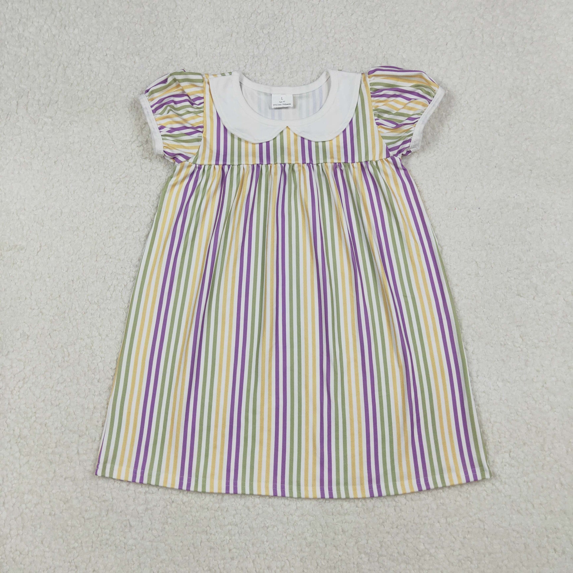 Baby Girl Short Sleeves Colorful Stripes Mardi Gras Knee Length Dress RTS