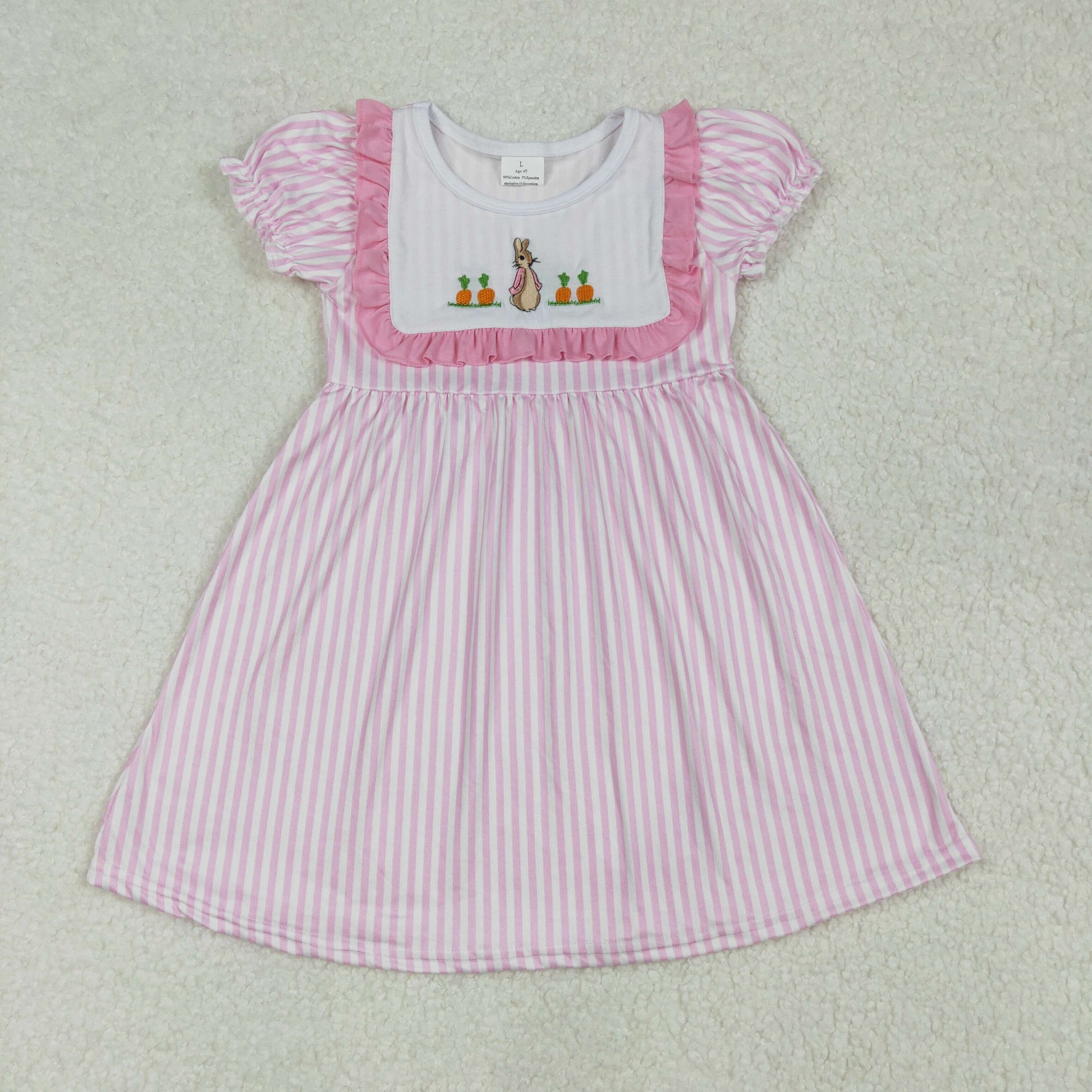 Baby Girl Short Sleeves Embroidered Rabbit Carrot Knee Length Pink Dress RTS