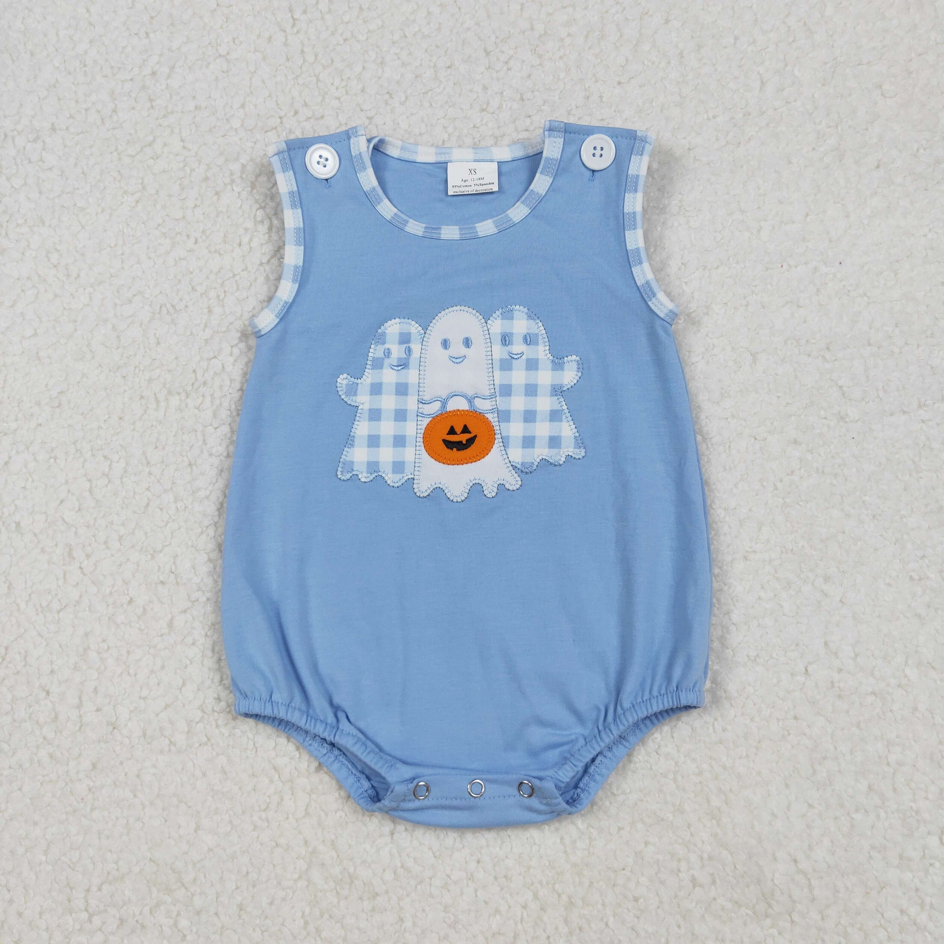 Baby Girl Short Sleeves Embroidery Ghost Pumpkin Halloween Pink Bubble Romper RTS