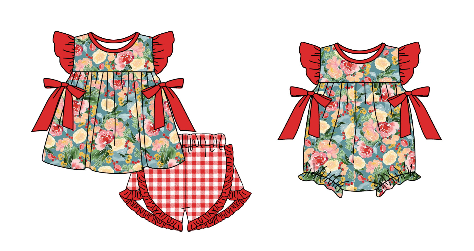 Baby Girl Short Sleeves Flower Sibling Summer Romper Clothes Set ( Moq 5 Each Design )11.25