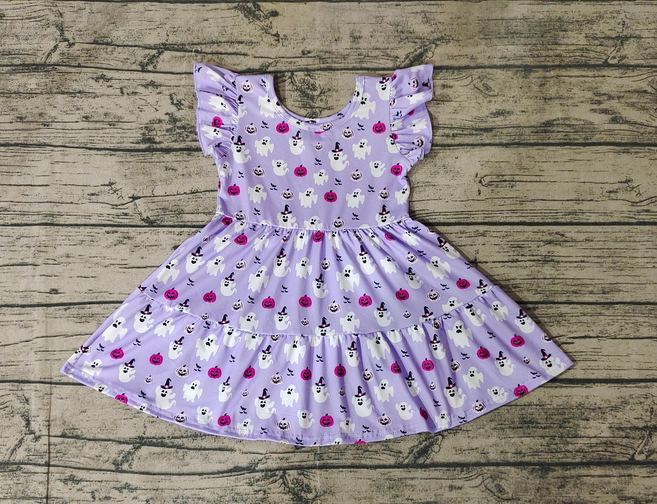 Baby Girl Short Sleeves Halloween Ghost Ruffle Purple Dress