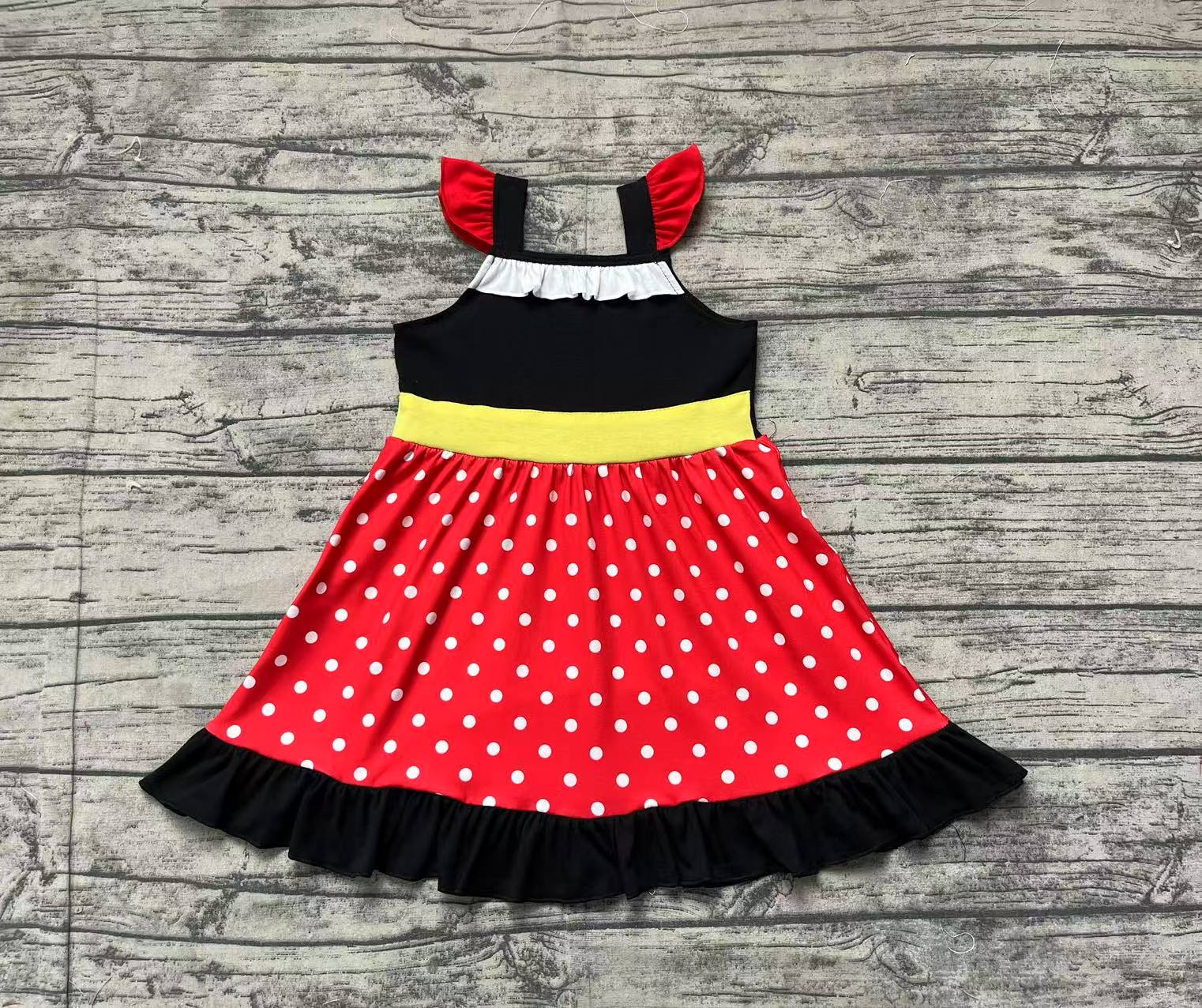 Baby Girl Short Sleeves Princess Dots Knee Length Dress RTS