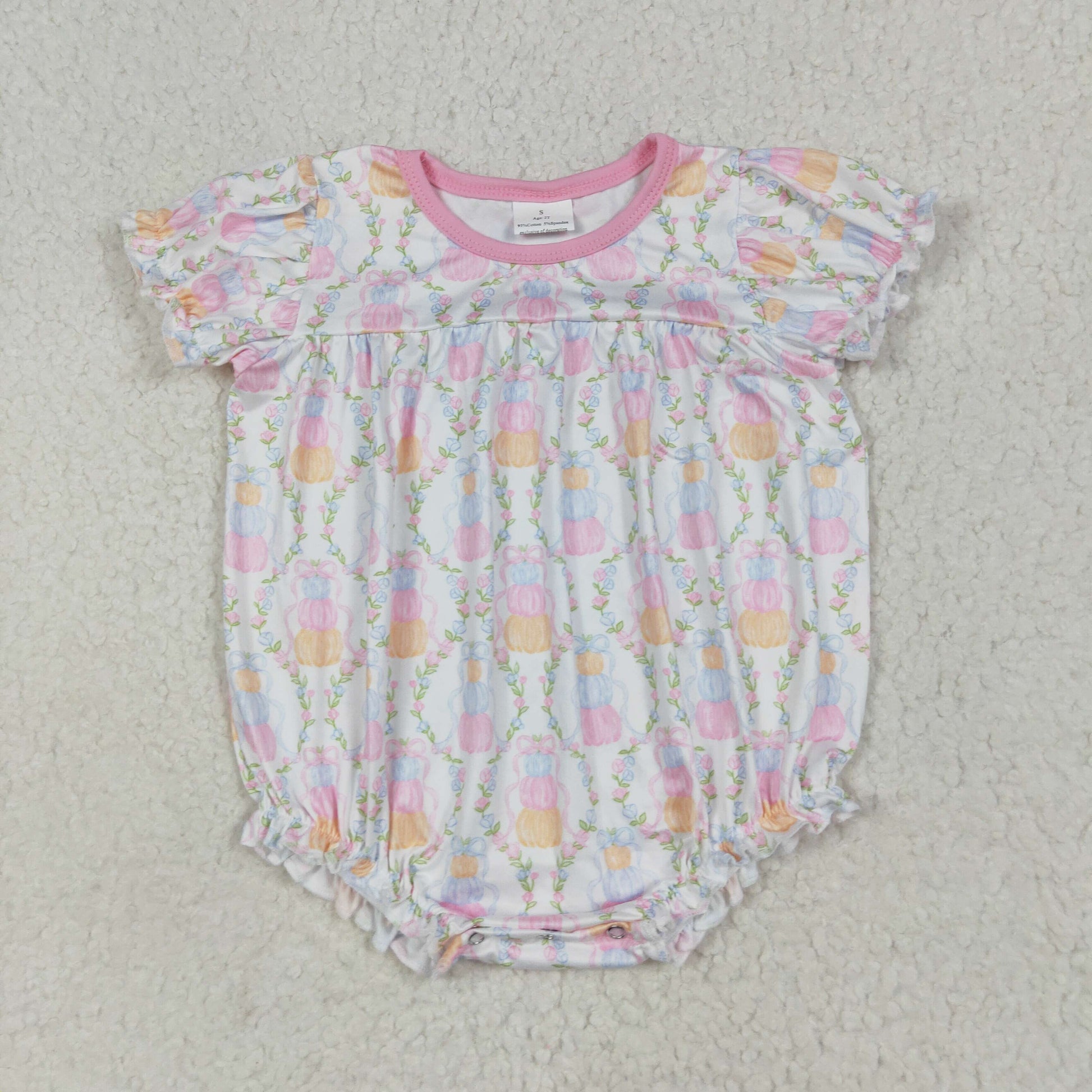 Baby Girl Short Sleeves Pumpkin Bows Floral Bubble Fall Romper RTS
