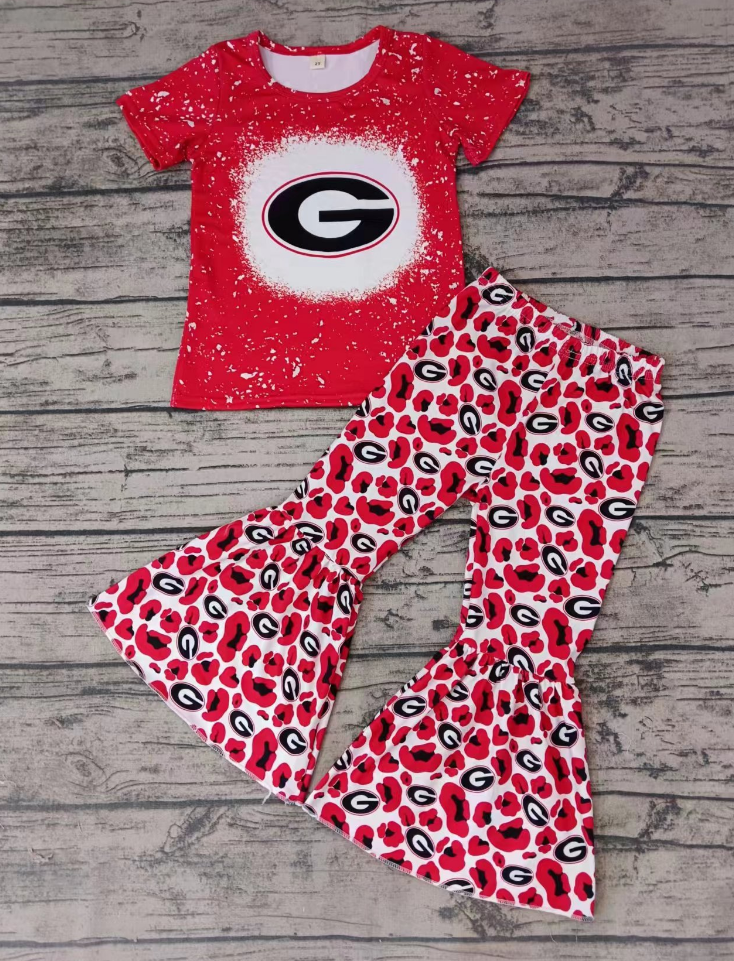 Baby Girl Short Sleeves T-shirts Leopard Bell Pants Kids Team Outfit Moq 5