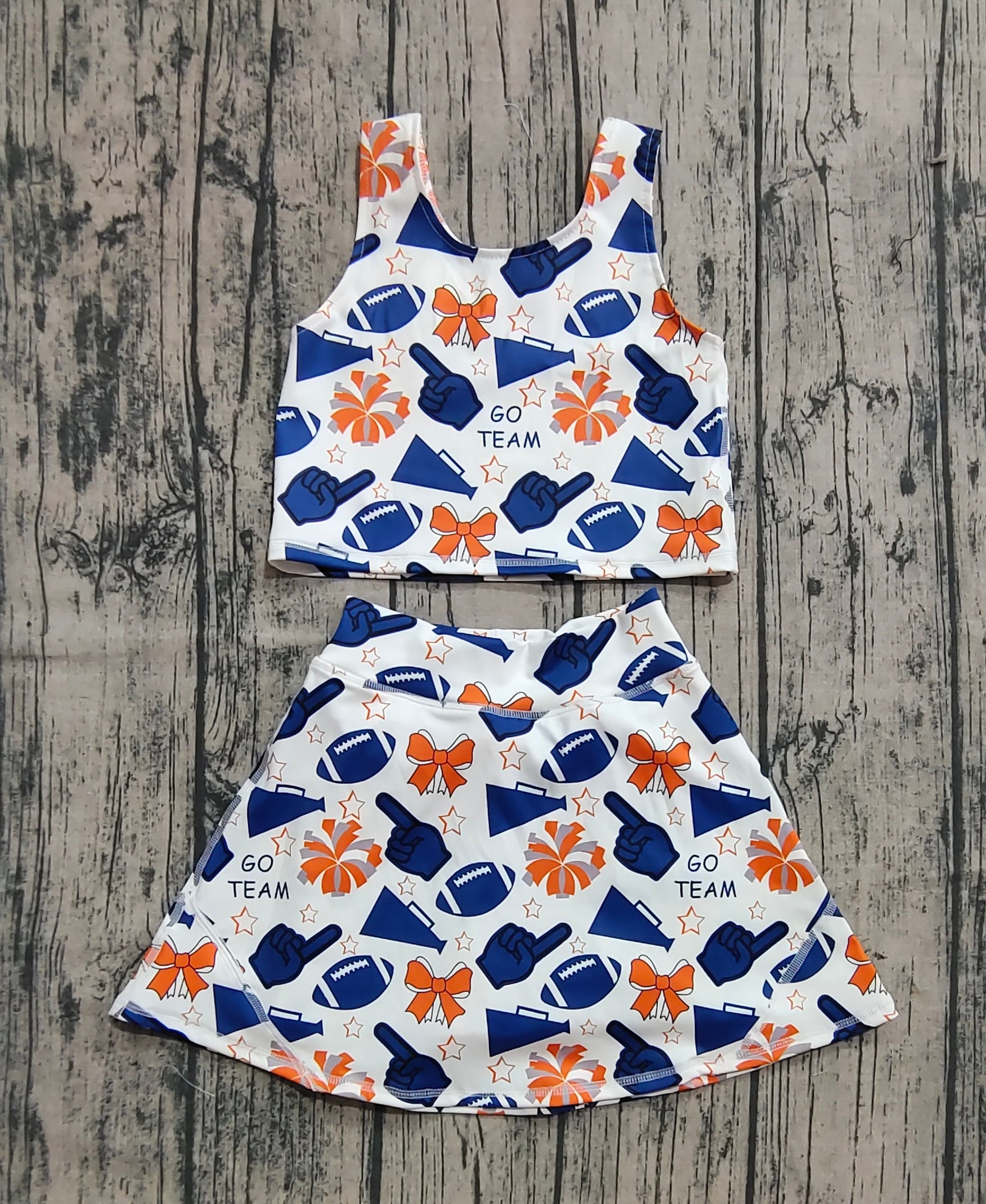 Baby Girl Shot Sleeves Navy Football Stars Bows Cheer Tops Skort Team Yoga Active Set RTS