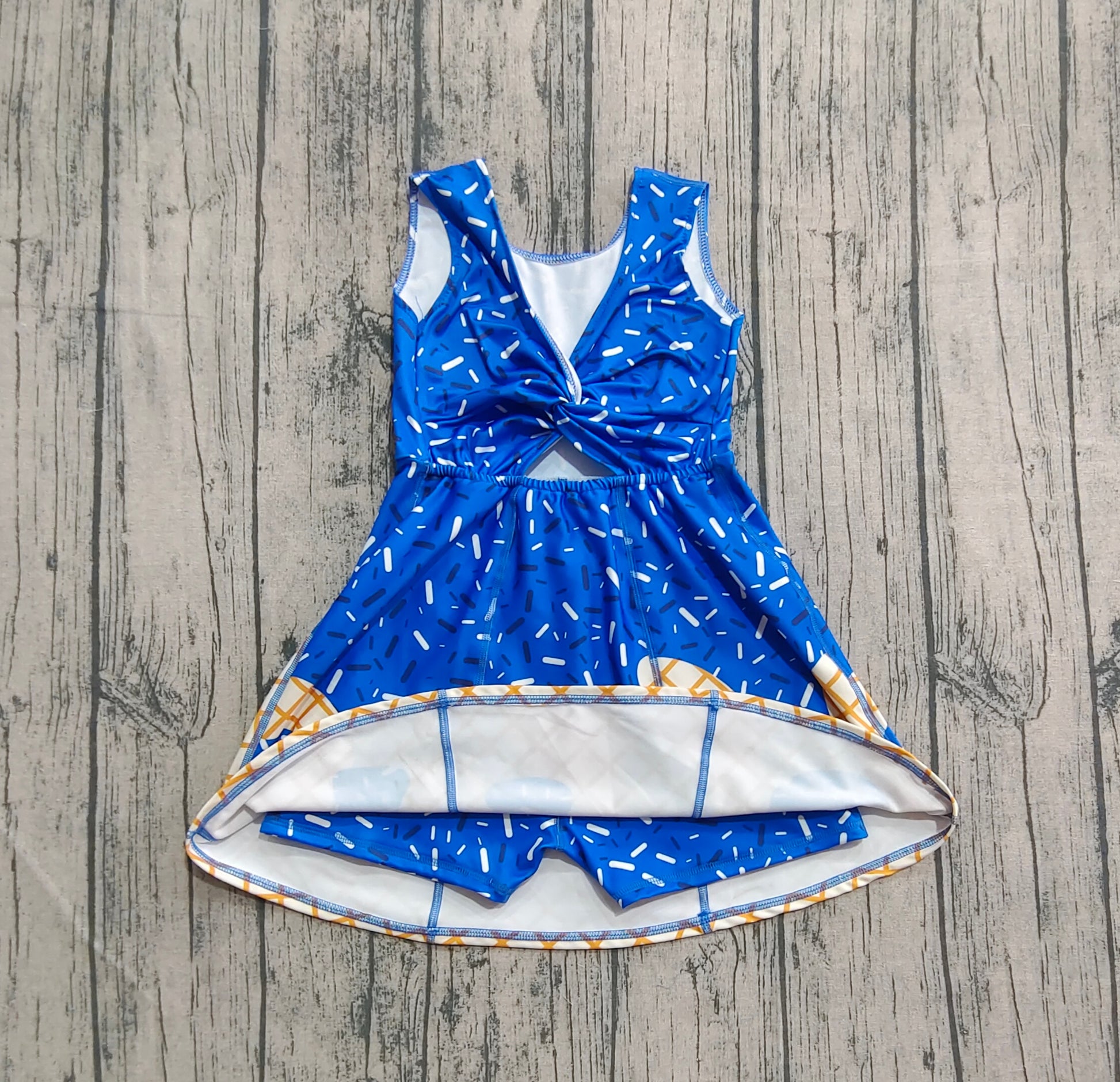Baby Girl Sleeveless Drips Summer Blue Knee Length Yoga Active Dress RTS