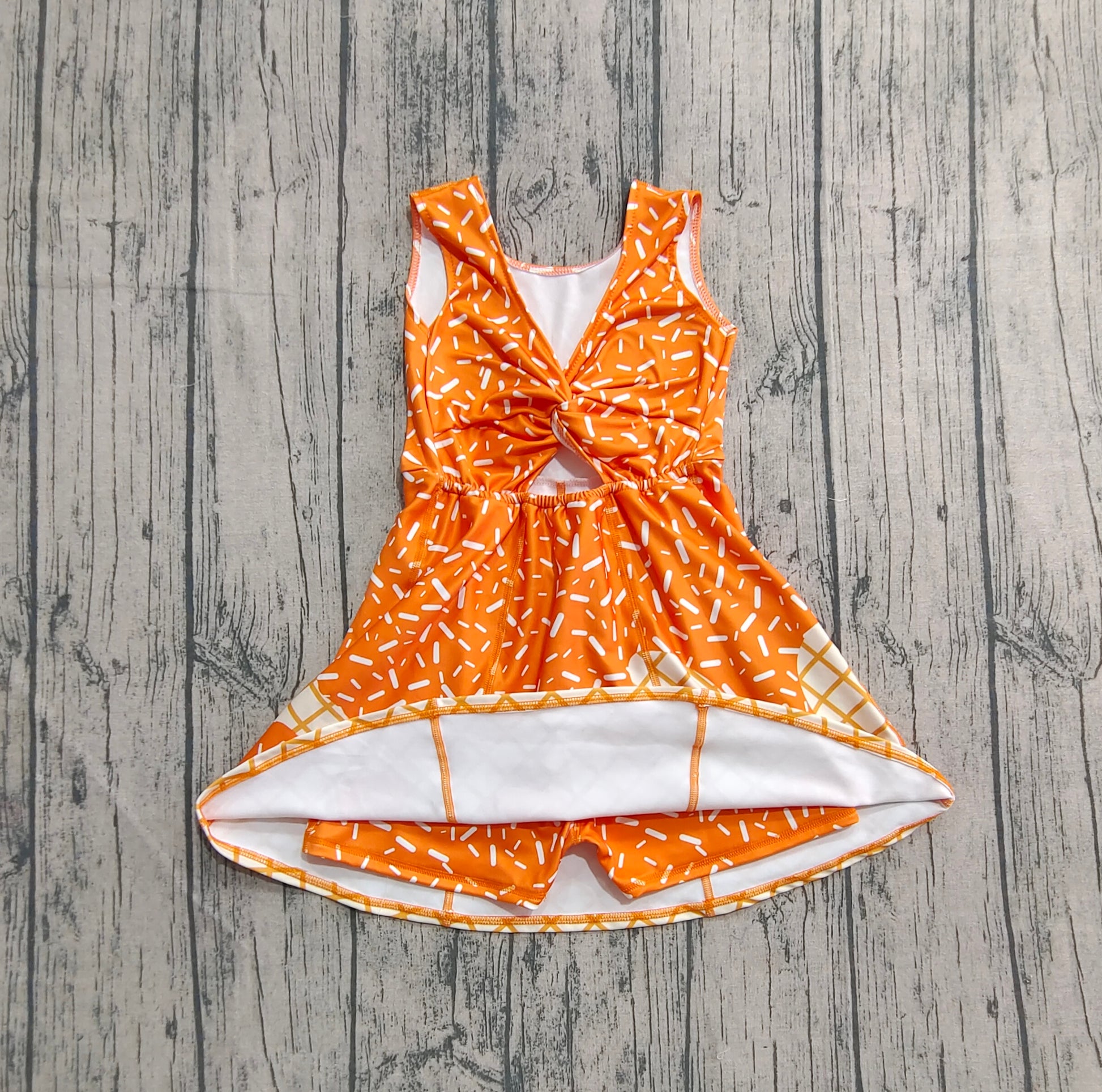 Baby Girl Sleeveless Drips Summer Orange Knee Length Yoga Active Dress RTS